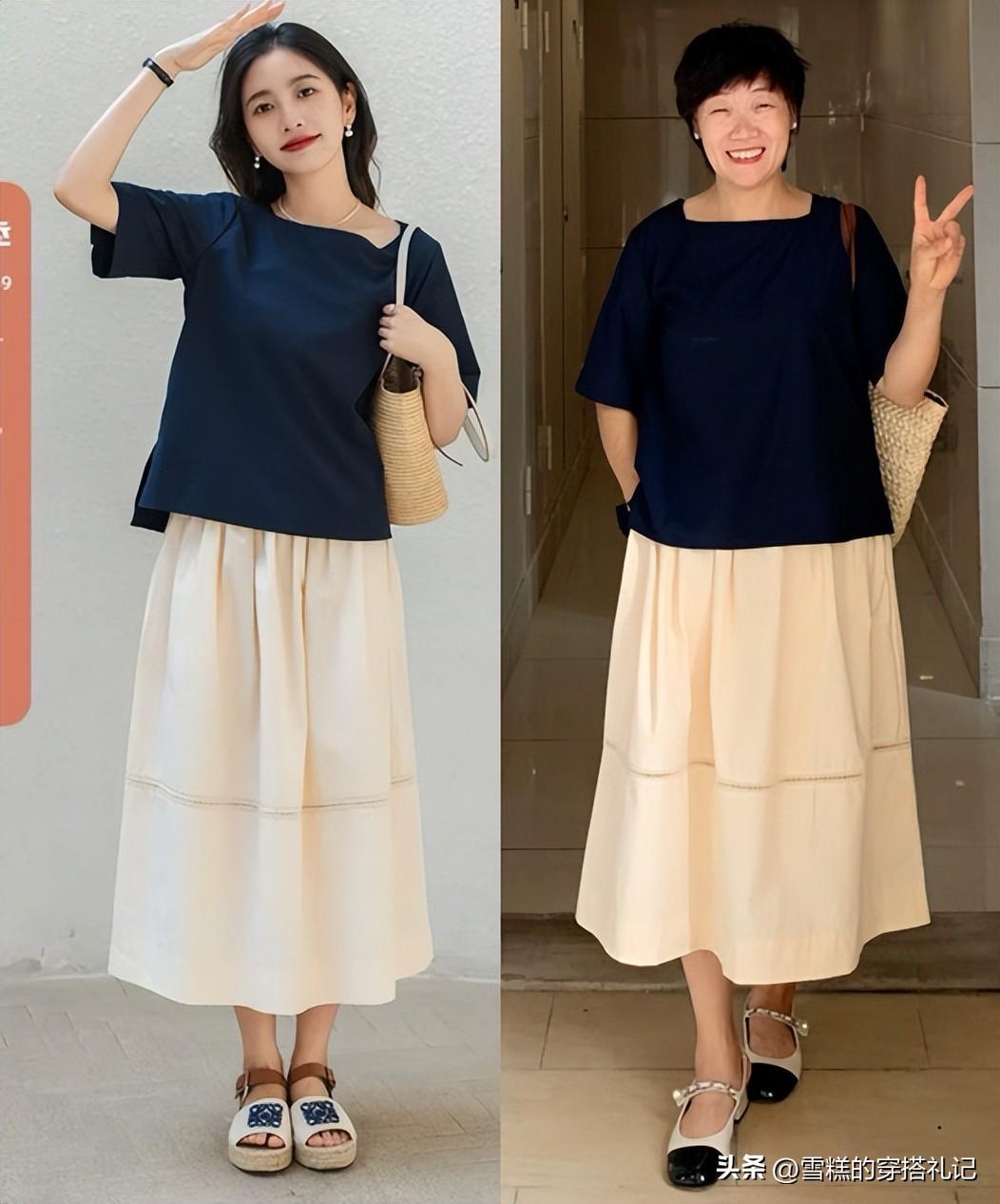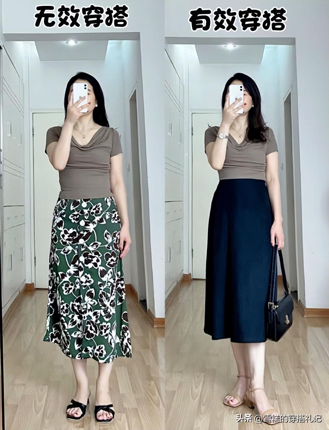 優雅端莊的穿搭方式,還是將闊腿褲換成半身裙來穿。半身裙可選擇的款式就有很多,從版型上展開要選直筒或者是a版的,能遮蓋任何下半身的缺點。另外羣面不要有過多的複雜元素,比如老氣的碎花一般難駕馭,基本上會讓整個穿搭變難看廉價,純色更友好,包容度高也能塑造出氣質女人的形象,越久越耐看。