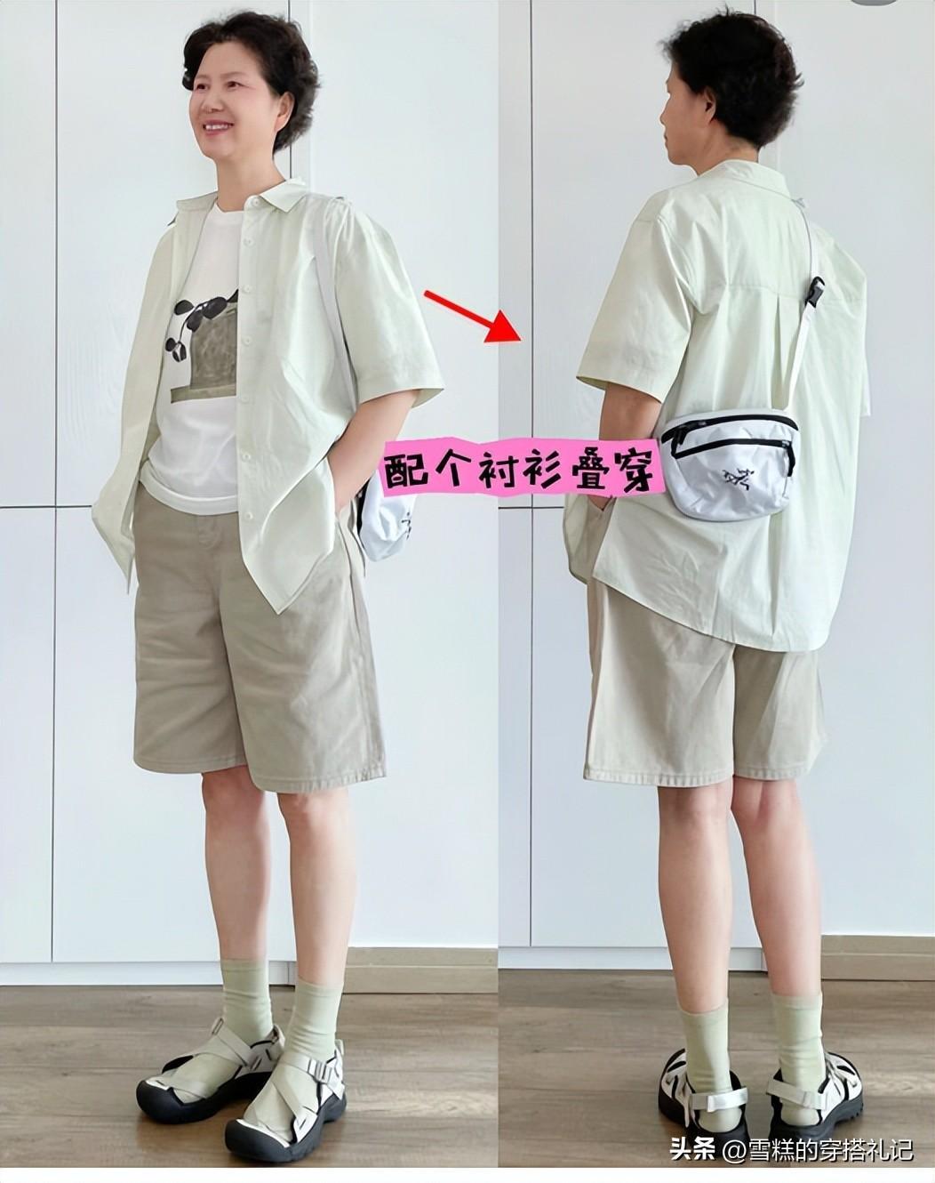 杭州阿姨的穿搭中不將T恤塞裏面穿,可以將T恤自然的放下,這種穿法只要方法用對,顯瘦顯高的效果甚至比塞進去很佳。只需要注重T恤的線條設計,上下衣服形成自然流暢的直線線條,並且服飾的版型帶寬鬆度,但卻能獲得松而不垮的效果。