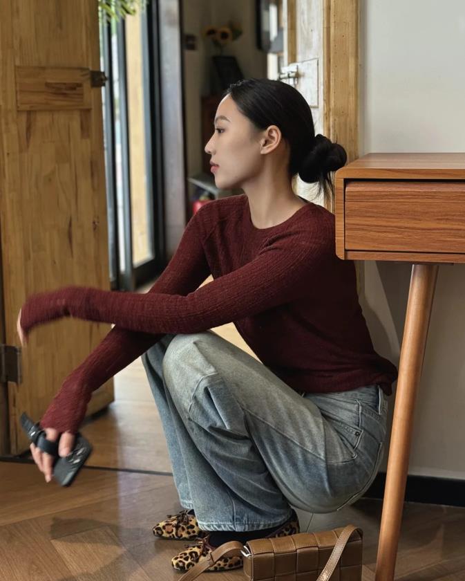 早秋,一定要試試這種安可拉紅色,真的太時髦好看和高級了,修身版型的安可拉紅針織衫,可以單穿,也可以與各種馬甲或襯衫疊穿,與牛仔褲的搭配,簡單卻不失高級,寬鬆版型的褲子,讓你的穿搭多了幾分鬆弛感。