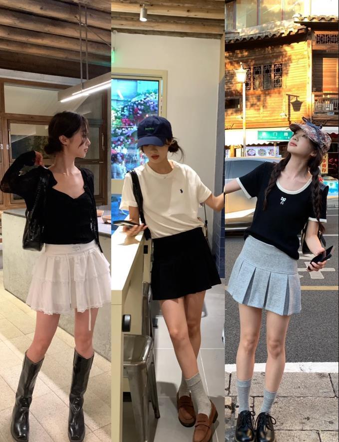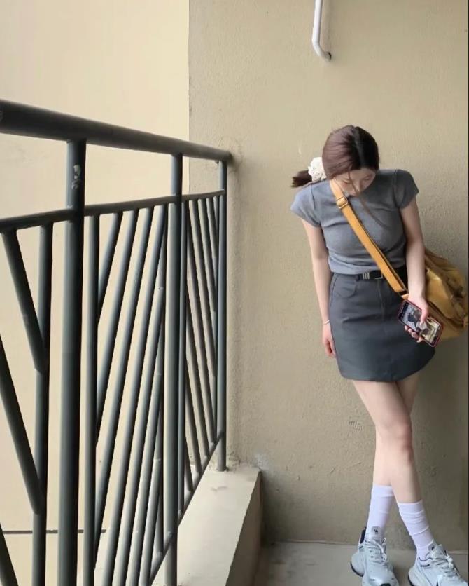 灰色是真的很愛呢,經典百搭又不失高級,不管是在夏天,還是入秋,穿搭簡簡單單就好了,基礎款短袖t恤+灰色半身短裙,同色系的組合,很顯高級。腳上踩着的一雙運動鞋,也爲整個着裝增添了幾分休閒氣息。