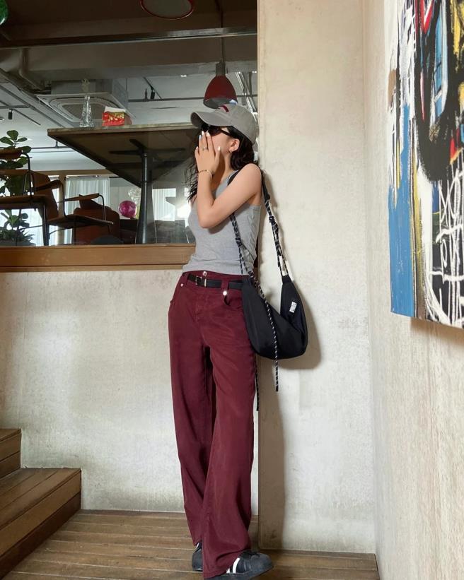 如果你覺得自己膚色駕馭不了這個色調,那麼可以爲自己選擇相關的下裝,或者是小面積配飾,安可拉紅牛仔褲,這個色調其實並沒有想象中那麼難駕馭,簡單配一件灰色背心就很高級了,搭配一雙運動鞋、棒球帽,青春又不失休閒。