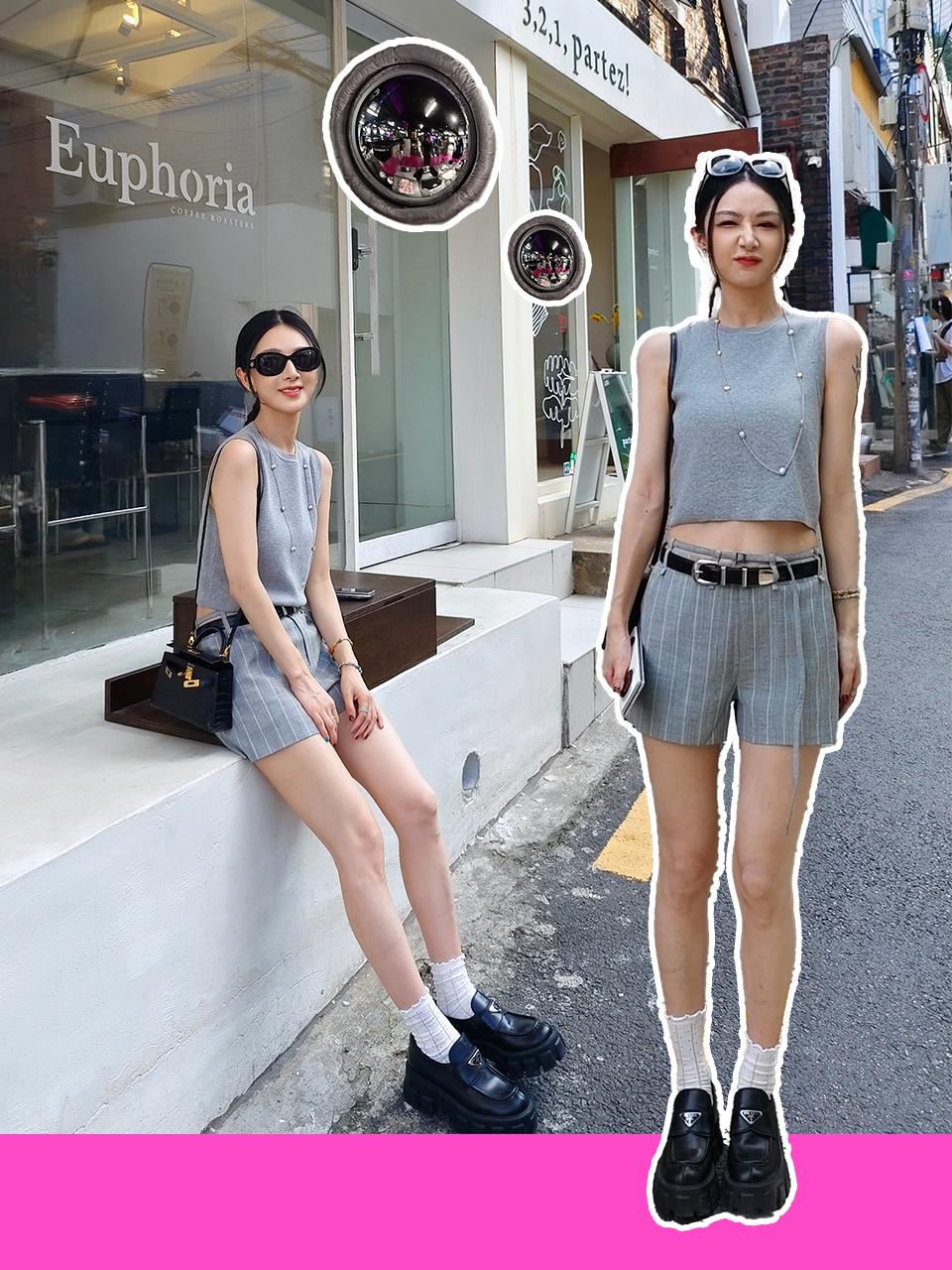 尤其是“格雷系”+單品沉穩的質感組合,白襪與樂福鞋,不僅更顯身材比例,也讓整套穿搭更有學院風的青春感。