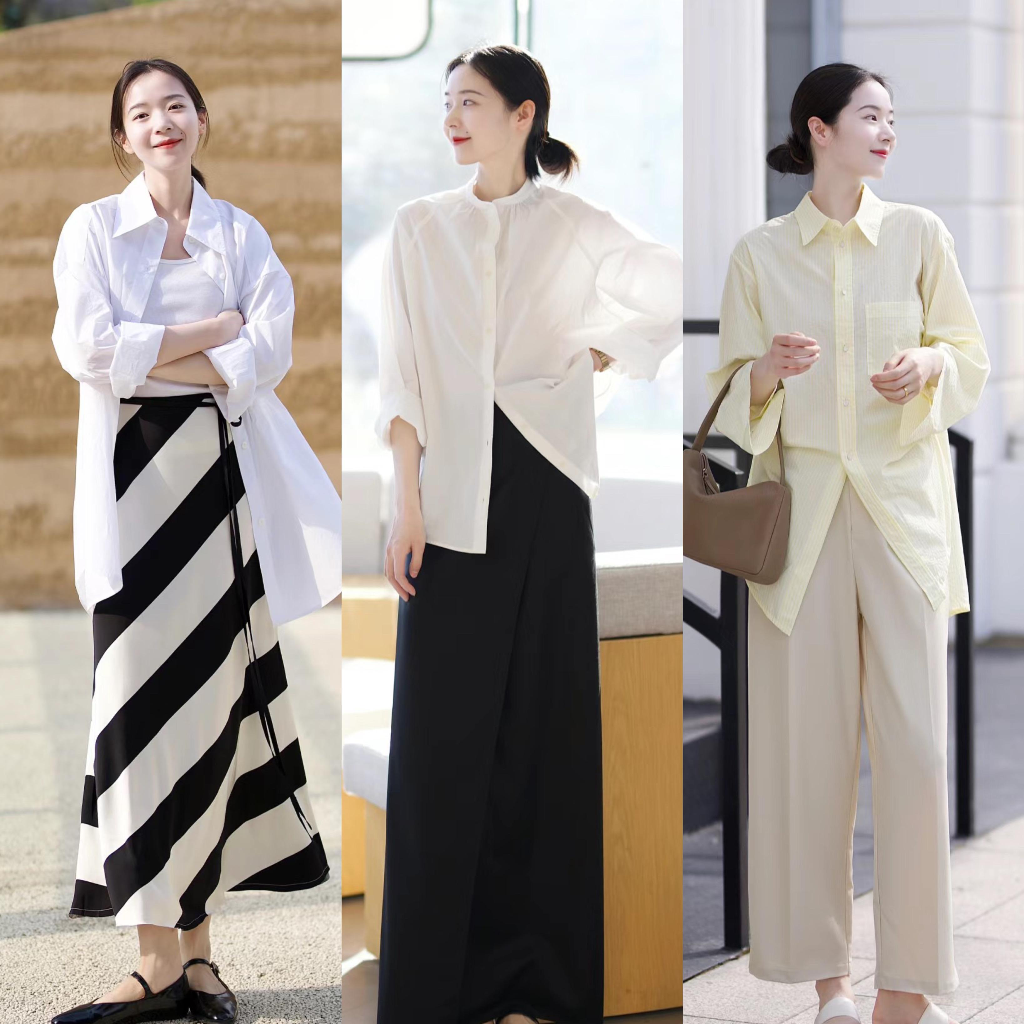 一件寬鬆白襯衫,或者直接配牛仔褲、也可以搭配絲滑細膩的半身裙,都可以演繹清冷大女人風的優雅。