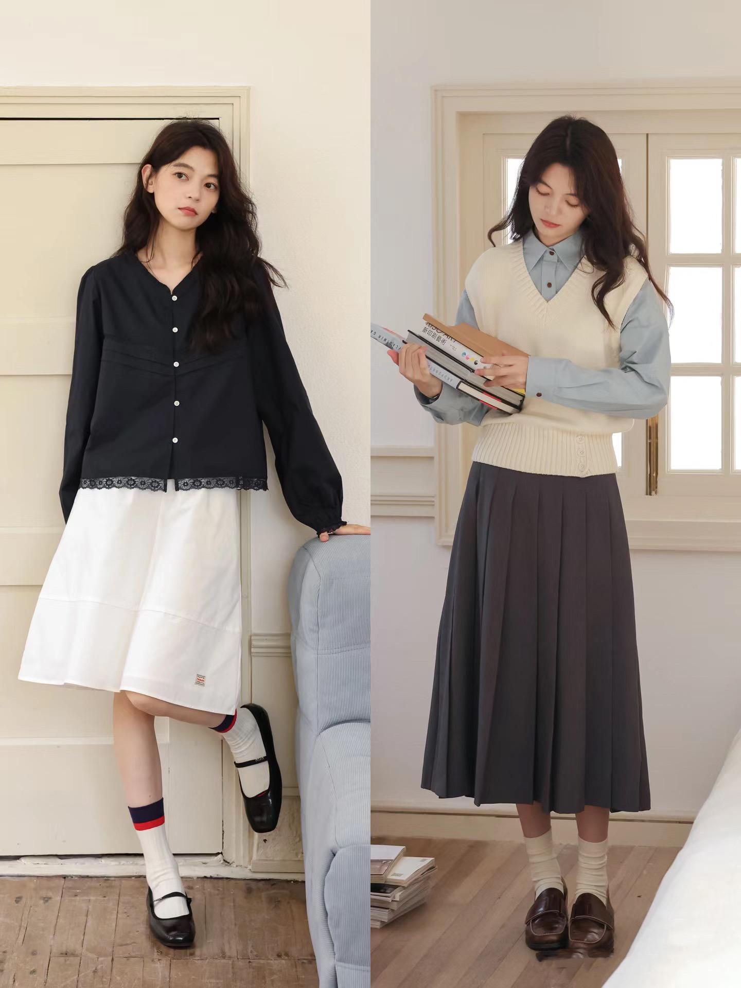 小個子的秋天:襯衫+馬甲、傘裙+樂福鞋、是標配,顯高又文藝