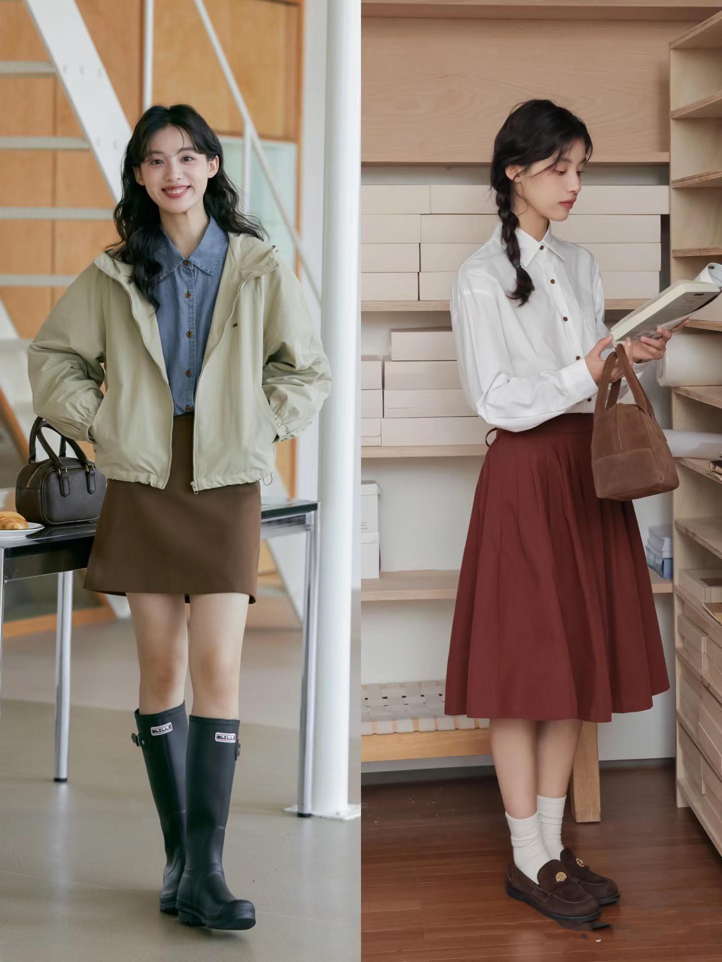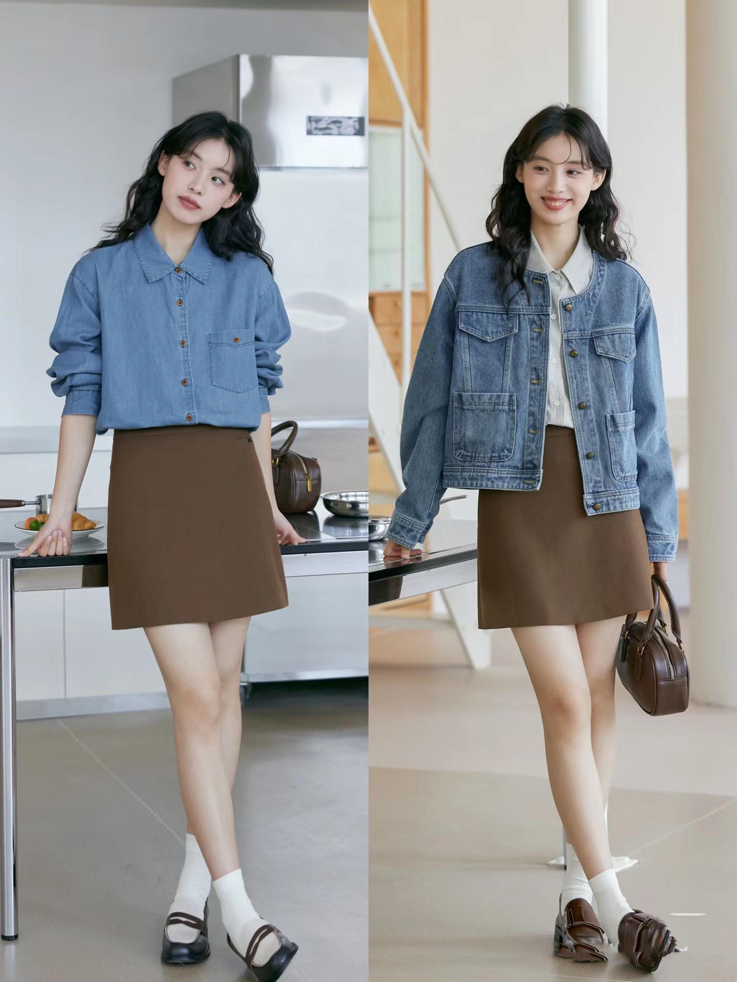 經典的藍色襯衫/外套配上棕色的A字形半身裙,也能削弱秋日裏清冷質感,配一雙厚底的樂福鞋,清爽顯高、也帶着幾分貴氣。牛仔襯衫/外套的搭配,總是更時尚。