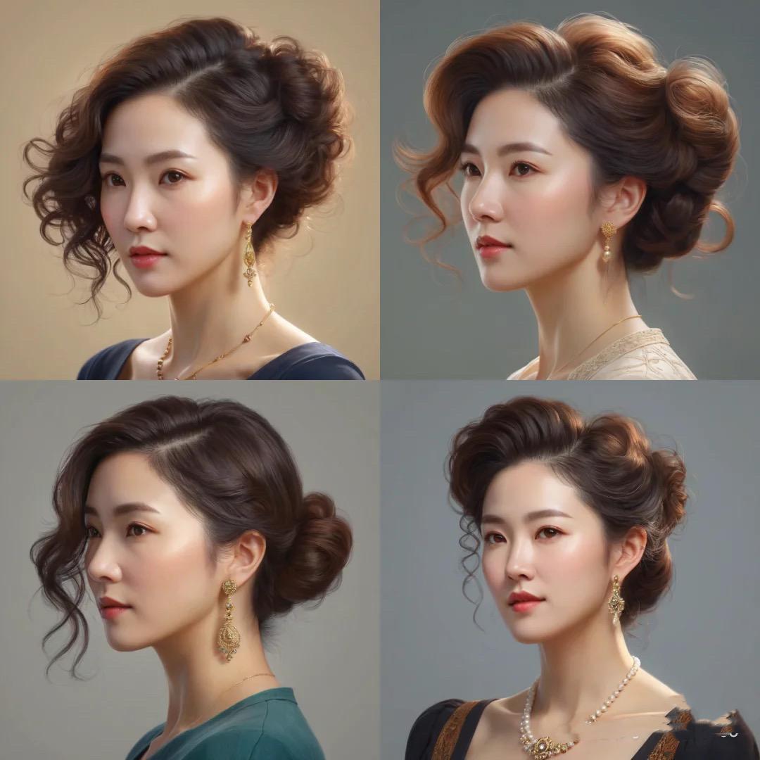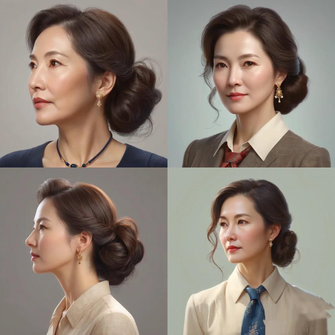 盤發會更利落,低矮一點的盤發不張揚,更符合年齡定位。如果想要溫柔雅緻,可以讓盤發更蓬鬆一點,還顯得髮量多。
