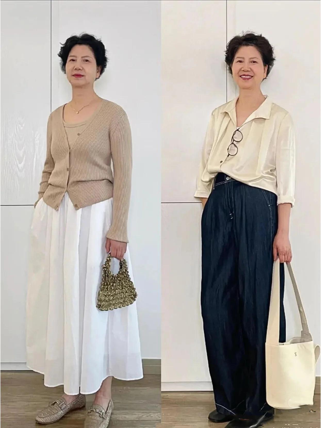 60+的年紀,精氣神也比不上年輕人了,適當的通過色彩提升氣色,是常見的方法。不要總穿暗色系衣服,尤其是上衣。
