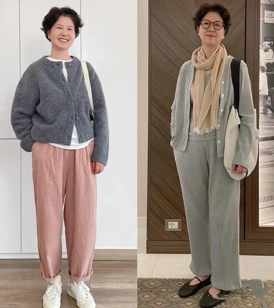 女人到了一定年紀,並不需要盲目的追求潮流。我們可以嘗試款式舒適的搭配,比如寬鬆穿條紋針織衫,寬鬆的衛衣就更舒適自然。
