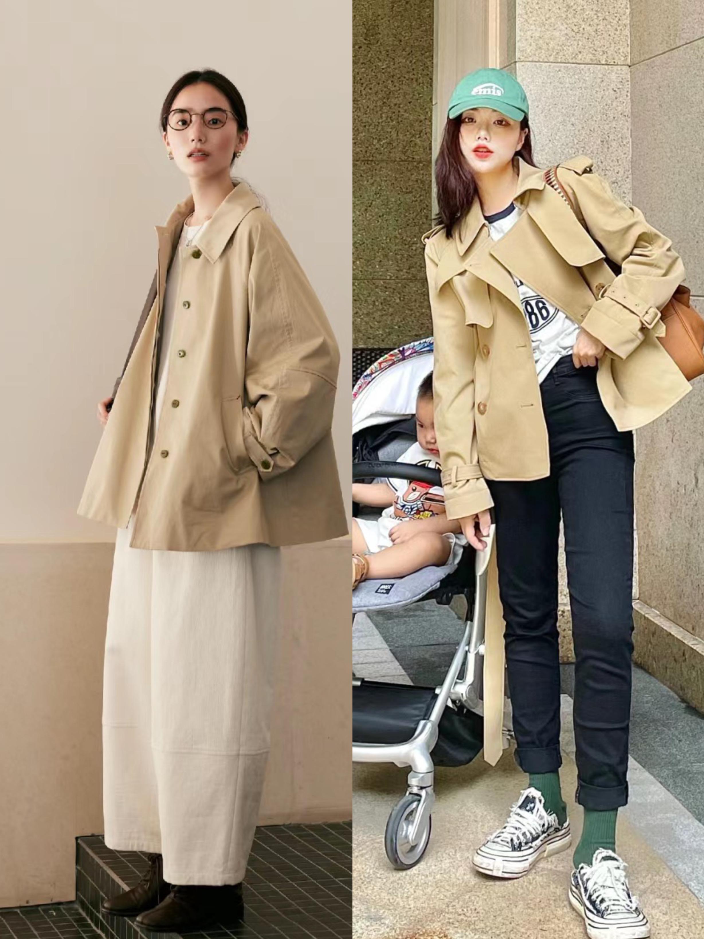 短風衣就是這樣的存在,不管高個子、還是矮個子,都可以穿着。小個子女生在短風衣之間,也能尋到最適合自己的安慰。