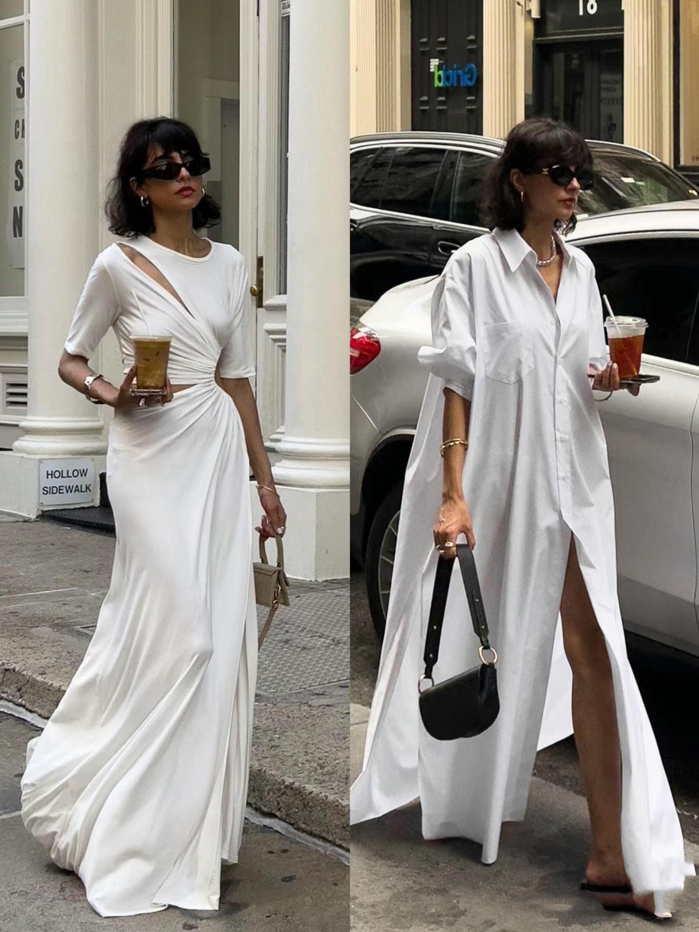 設計有重點,可以突出曲線/鎖骨/大腿的線條,讓我們的穿搭變得更加個性考究。就像裹身裙個性鏤空,以及白色襯衫裙解開的紐扣,露出鎖骨和大腿,大方又迷人。