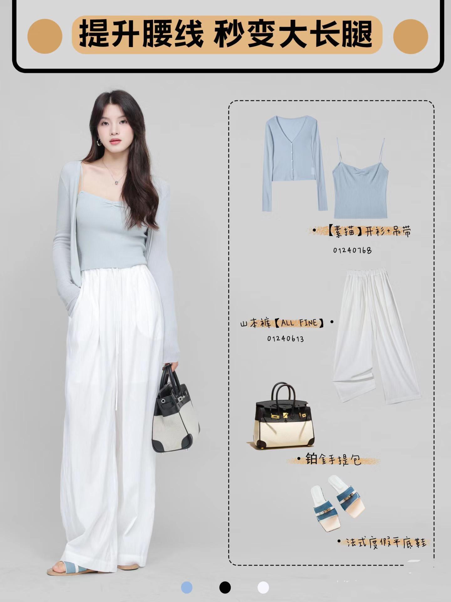 顯腿長的關鍵,就是腰線要足夠高。高腰線的白色闊腿褲、適度寬鬆的直筒褲、都比較適合梨形身材,隨着腰線的升高、雙腿也顯得更加修長了,趨近於三七比例更醒目。