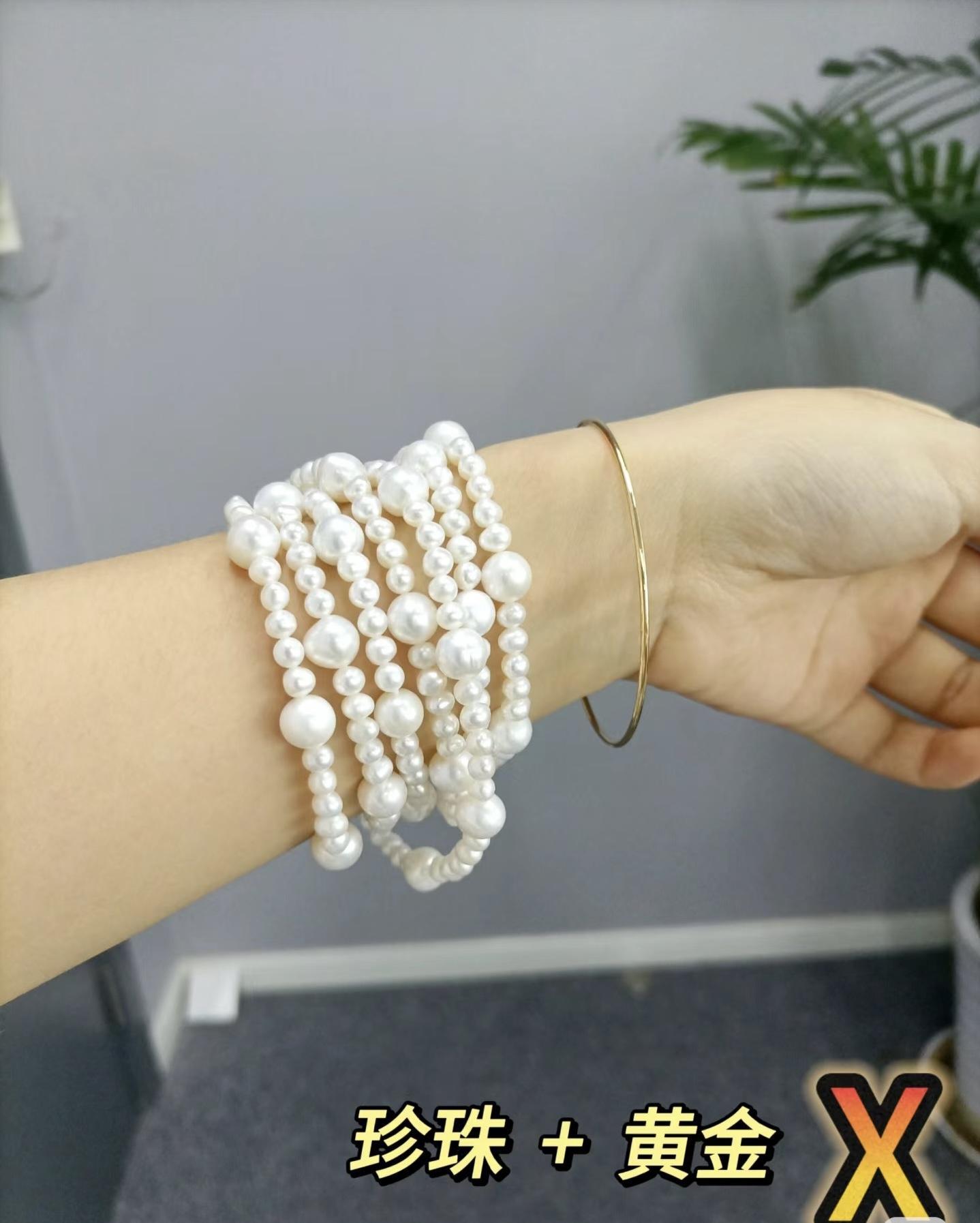 珍珠手鐲,硬度相對比較低一點,它表面的光澤感最怕磨損了。即便黃金質軟,也經不起日積月累的碰撞。