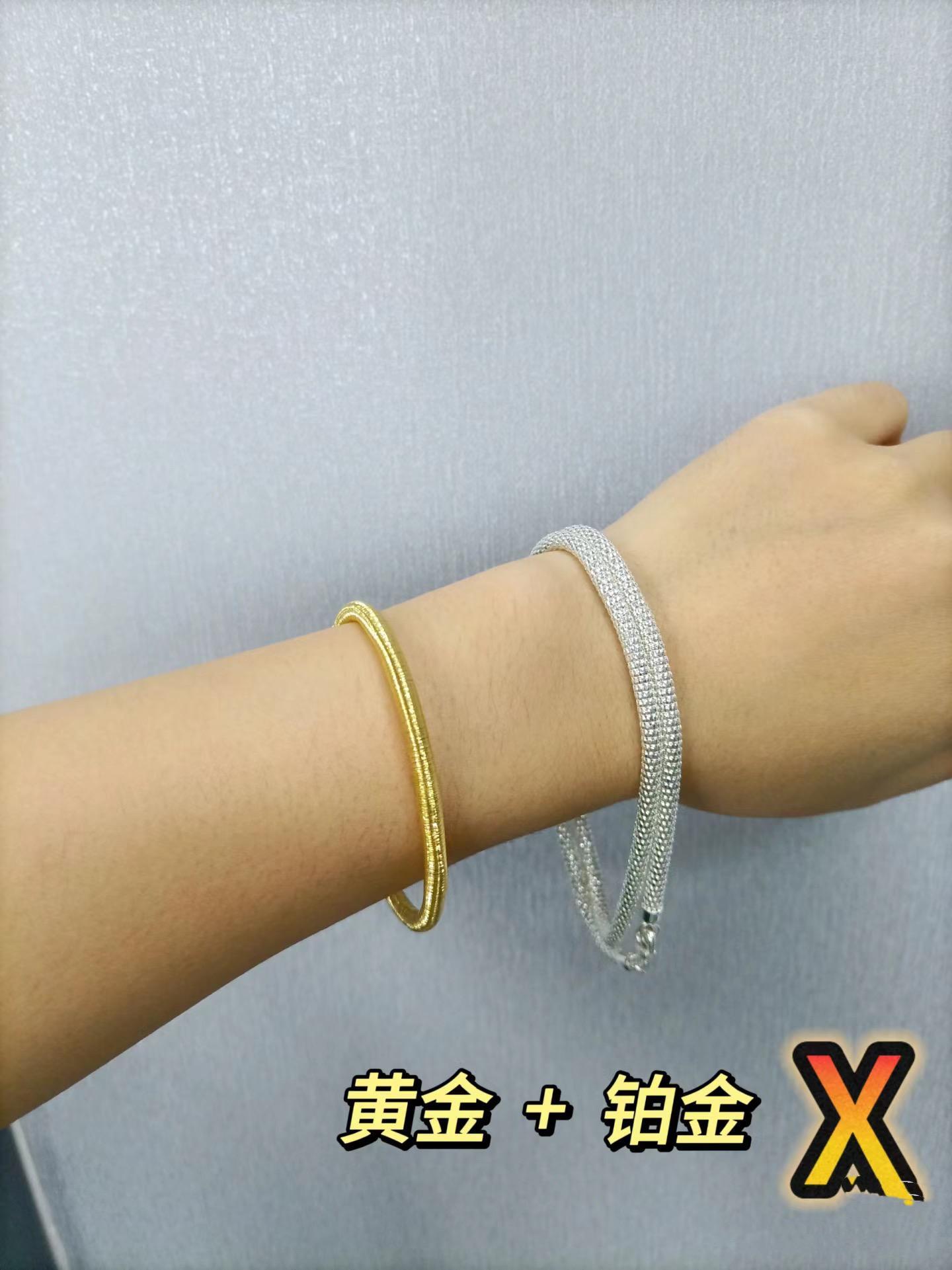 同樣是貴重金屬,但是黃金手鐲和鉑金手鐲,並不建議一起佩戴。因爲鉑金硬度超高,疊戴在一起會造成黃金磨損、更容易變形。