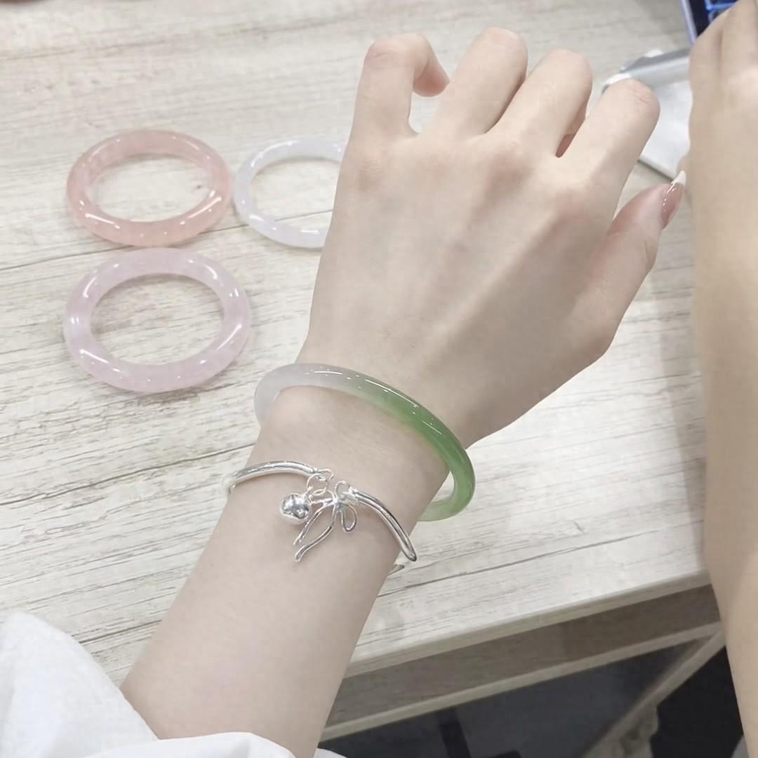 當玉鐲和銀鐲疊戴在一起,發出叮咚悅耳的聲響,也更加個性好看了。
