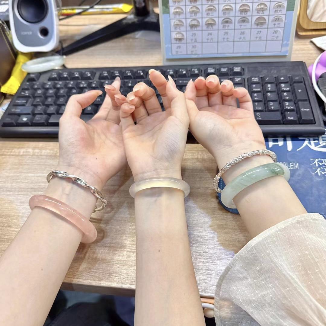 如果玉鐲的風格與銀鐲的風格不符,硬是疊搭在一起也不那麼好看,所以還是要親自上手試過才知道。