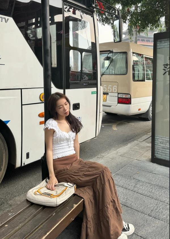 真的建議小個子女生一定要去嘗試下上短下長的搭配,可以優化整個身材比例,白色短款上衣+棕色半身長裙,腳下踩着一雙帆布鞋,也太顯休閒和舒適了吧,這兩種顏色組合一起,耐看又高級。