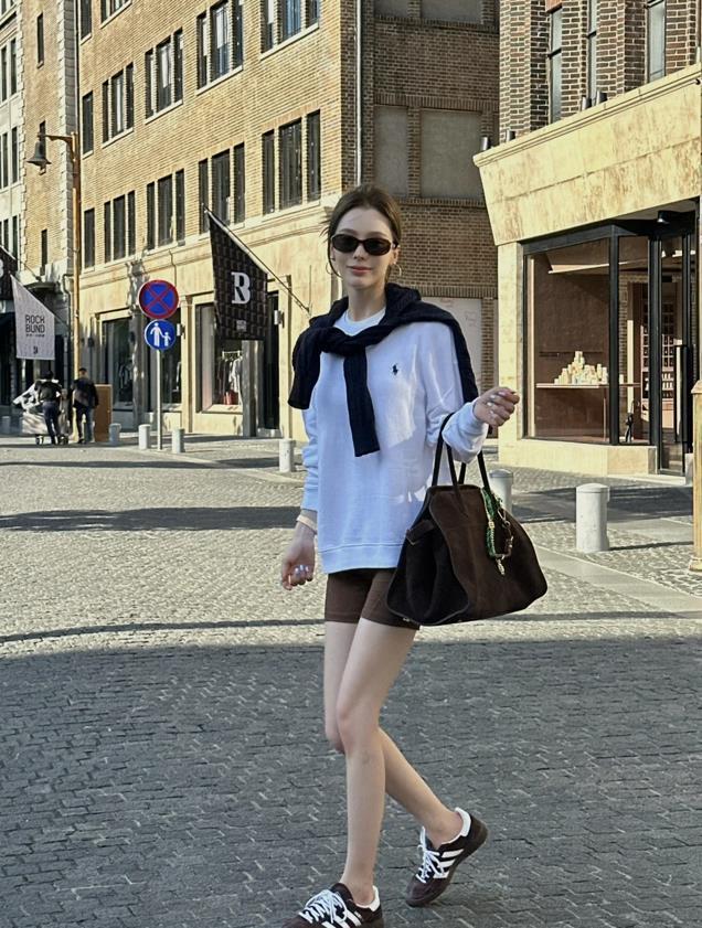 夏天要怎麼美拉德呢?棕色基礎款短袖,有種很沉穩溫暖的感覺,可以搭配白色、米色或者是淺卡其色的白色褲子,這樣的配色,很耐看時髦,也高級。