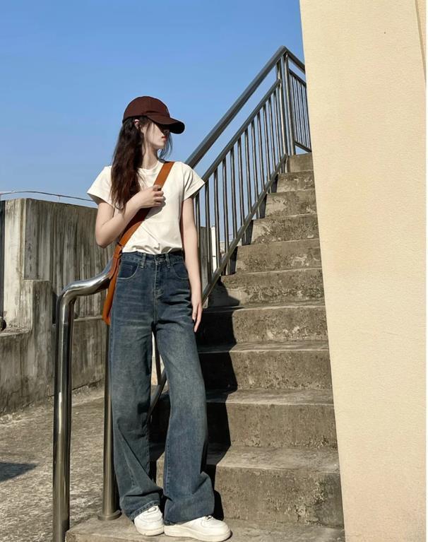 淺棕色的直筒牛仔褲,就是能給人一種溫暖又自然的感覺,這個色調也是非常百搭的,它既有秋天的暖陽,又不失大地的質樸,低調又顯格調。與白色打底針織相配,可太高級了。