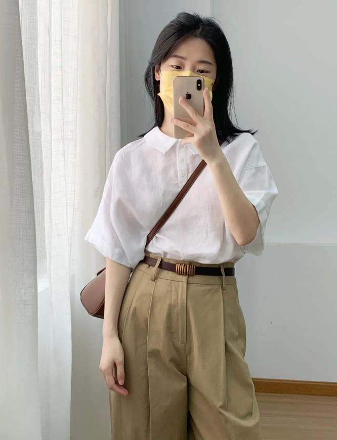 很適合上班通勤的一套穿搭,實穿又耐看,簡約款的白色短袖襯衫+淺卡其色休閒褲,很喜歡這種寬鬆的褲型,穿起來可太藏肉顯瘦了,腰間的棕色腰帶,還有同色系的挎包,都讓你的整個穿搭注入了幾分復古氣息。