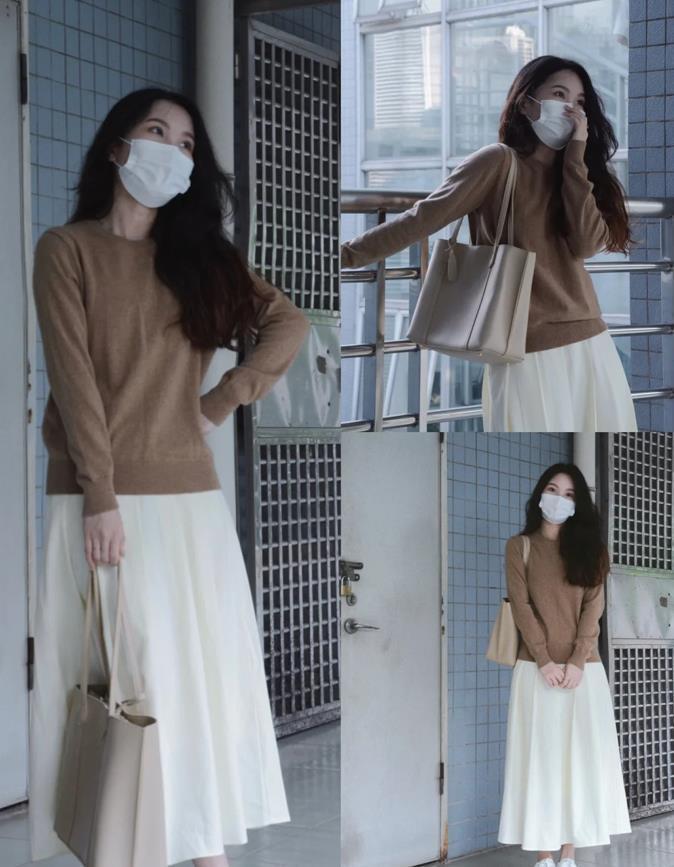 咖色系真的是永遠都穿不膩的顏色,特別是在秋冬季節,這個色調就很顯氣質和百搭,咖色針織毛衣+白色半身長裙,這一套氛圍感直接拉滿呢,溫柔又簡單,不管是約會,還是逛街都合適。