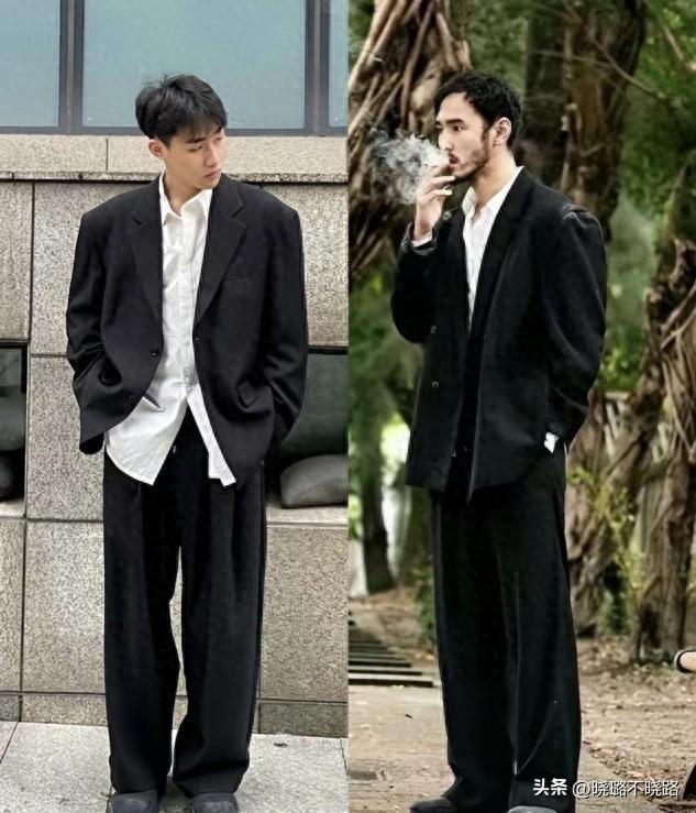 再有一點就是在大部分的工作場合,其實塞褲腰的穿法不是成熟男性來選擇,反而是那些上了年紀的老男人還在穿,因爲想要顯得比較大方和成熟穩重,其實我們可以嘗試利用大輪廓依賴衣襬下垂的穿法,去呼應我們褲子本身的輪廓搭配,這樣才能夠把握上下穿法的協調性。