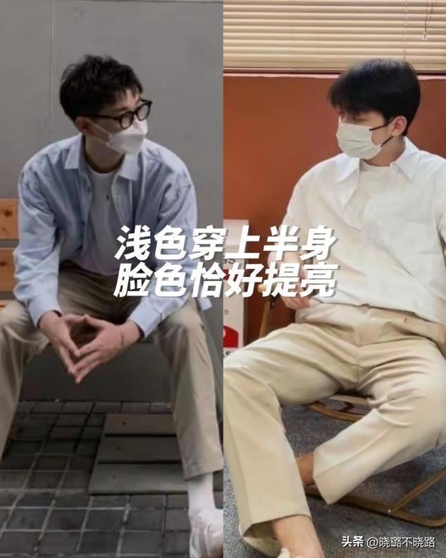 顏色對比是造型當中非常重要的一環,因爲顏色可以做好膚色的提亮,也可以做好第一眼的視覺提升。男性也要學會去恰當的穿搭,淺色系那些偏中性和偏淺的色調,都可以穿在上半身,用來點綴T恤襯衫,其實也可以很好的去提亮你本身的膚色感。