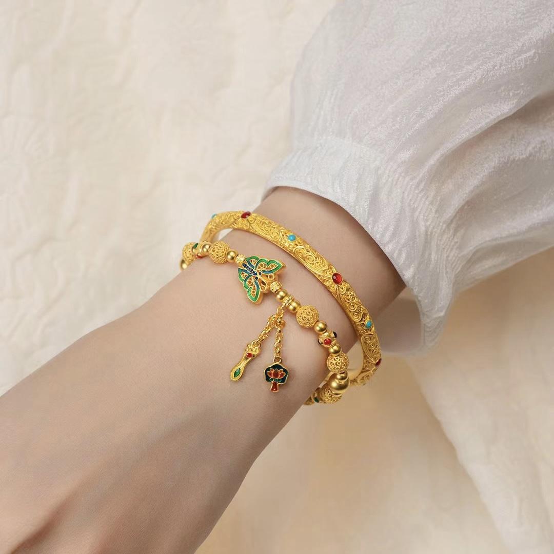 如果喜歡富麗堂皇的美,黃金+鏤空+琺琅的手鐲,真的是美到心坎上了。