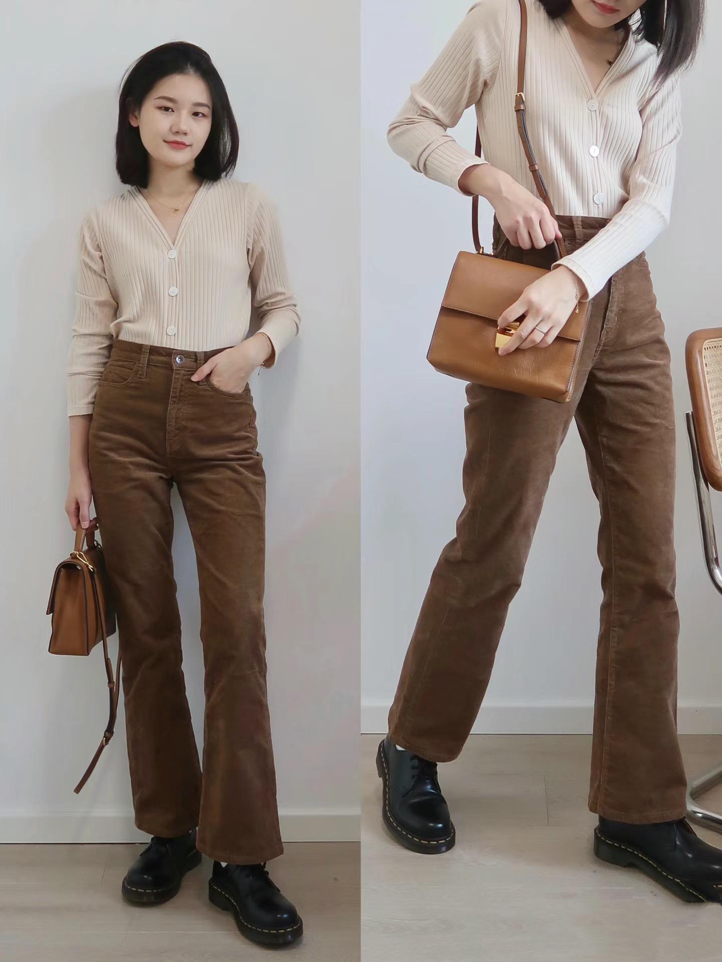 咖色褲子,飽和度高、亮度偏低。屬於一種成熟、內斂、溫潤、大方的色系。在蕭瑟的秋風裏,帶來無盡暖意。