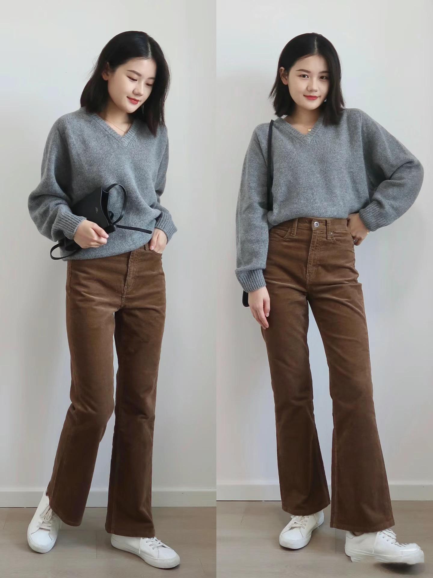 寬鬆的毛衣,配棕色褲子,上松下緊的組合簡單又高級。即便腰腹部有一點小肉肉,寬鬆毛衣也可以更自然的掩蓋。