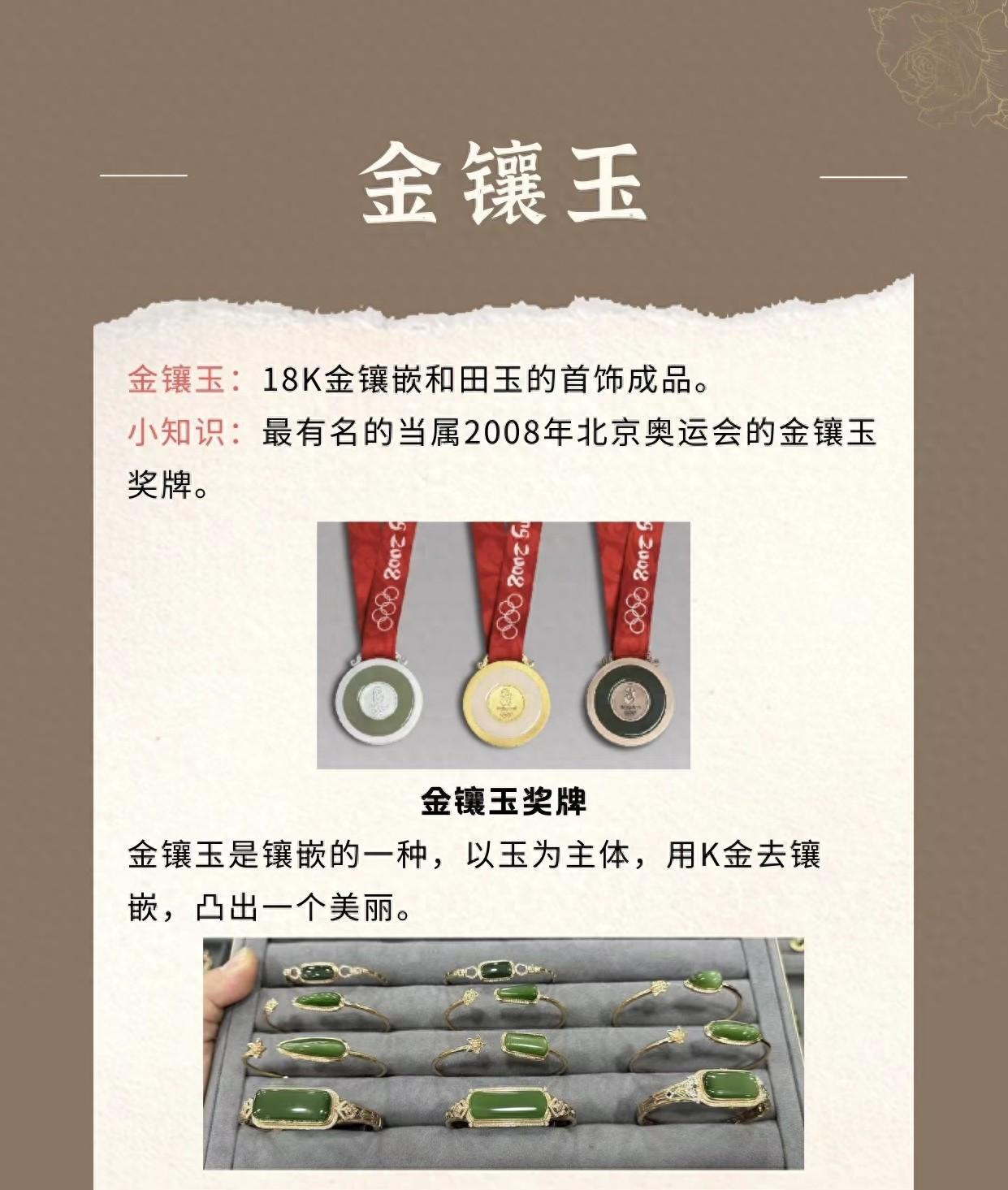 最有名的金鑲玉,自然當屬2008年北京奧運會的金鑲玉獎牌。玉石的成色、黃金的含量,精雕的工藝,都屬上乘。