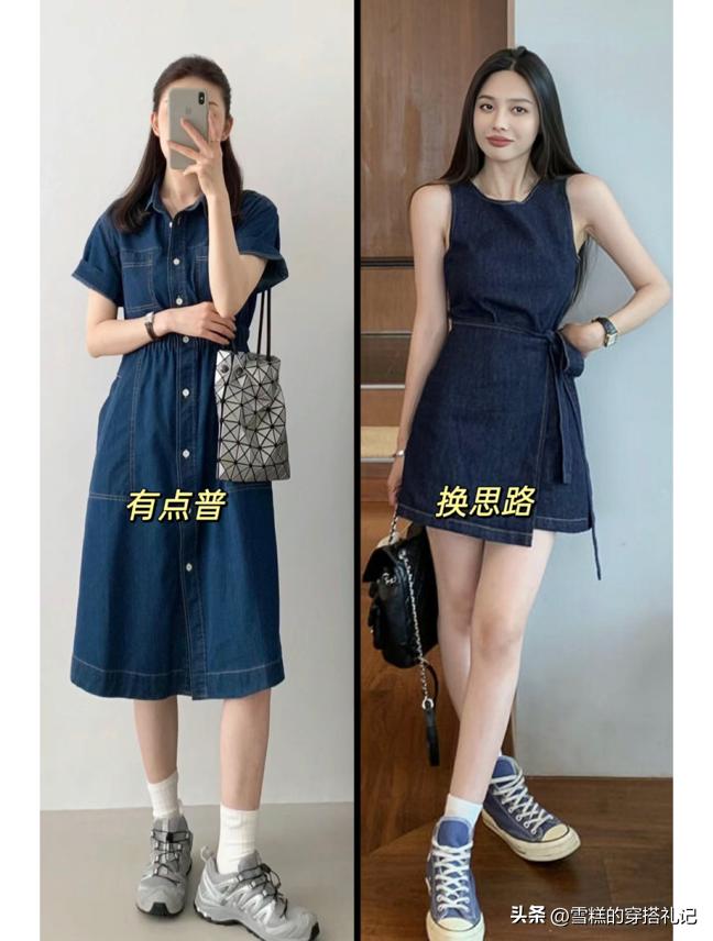 在裙子中一直流行又百搭的款式,非牛仔裙莫屬,幾乎每年都少不了它的身影,不過每年的牛仔裙設計在變,這也是它不會被潮流淘汰的原因。牛仔裙的設計。不要再選一些老土的款式,它真的很容易顯普不夠潮,要根據每年的流行設計與時俱進,帶帶露膚的背心一片式連衣裙更出彩。