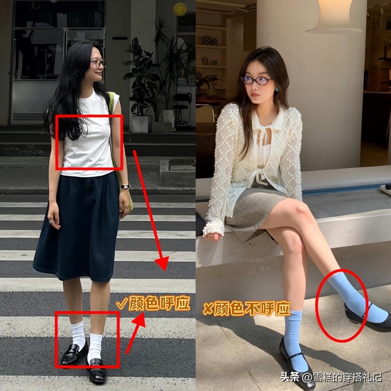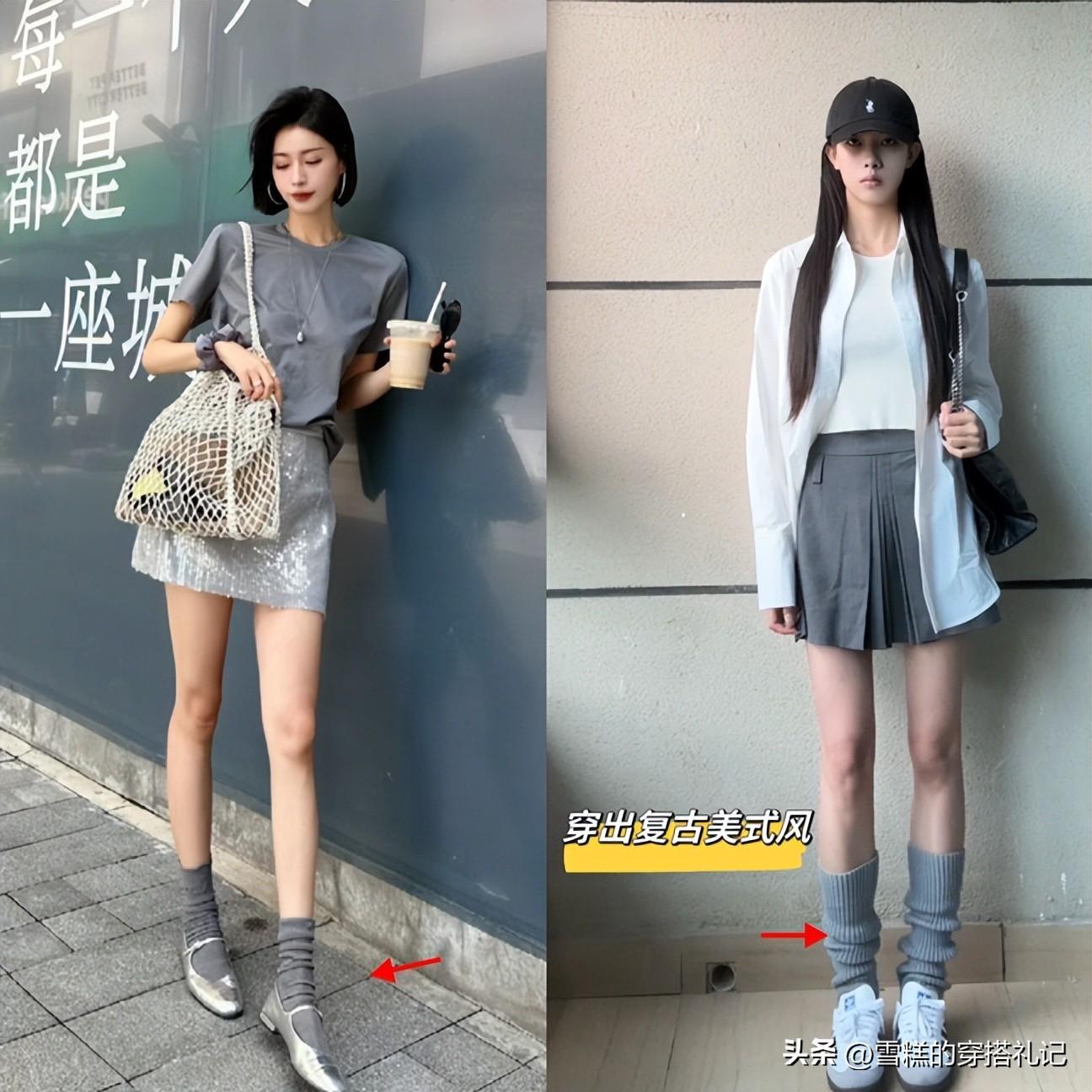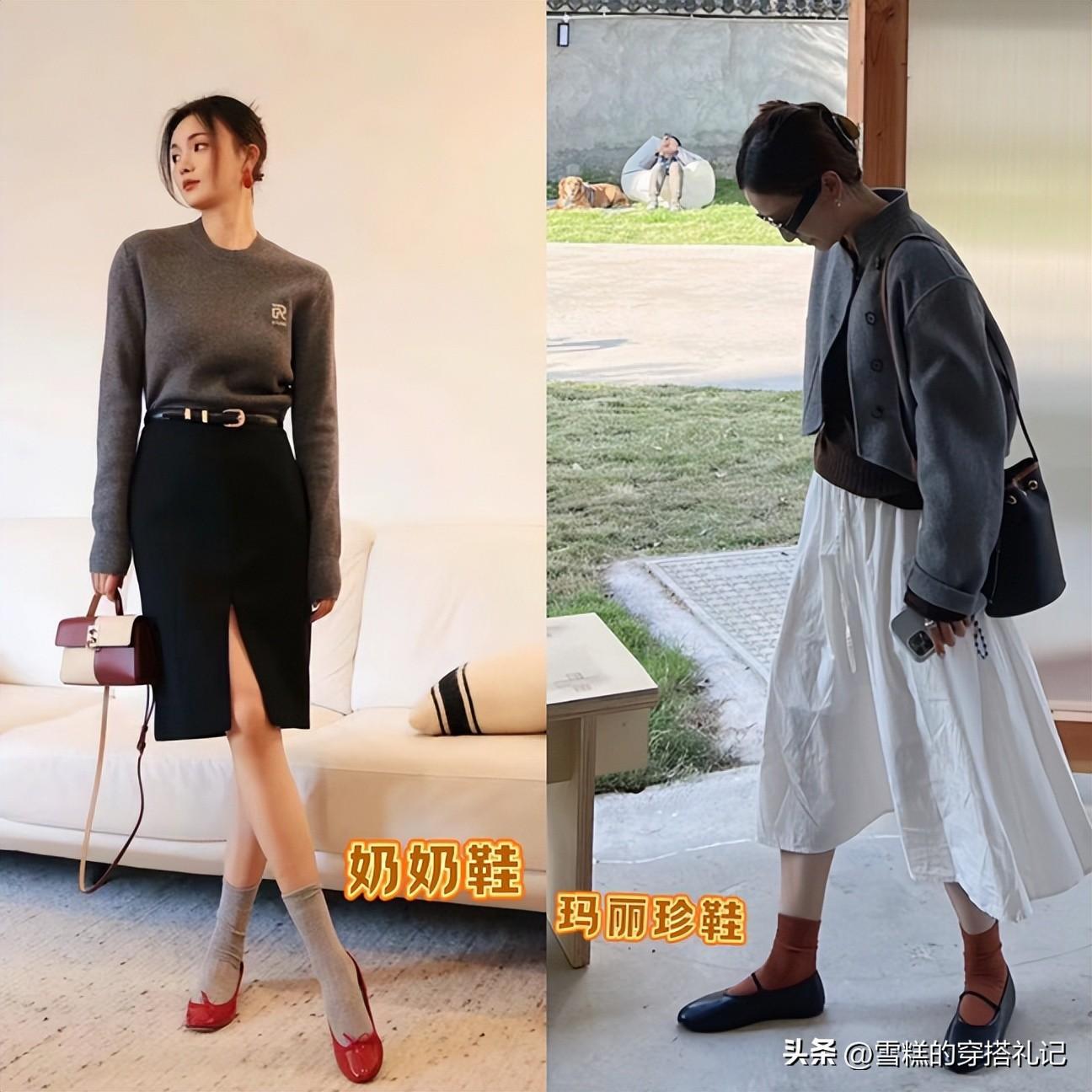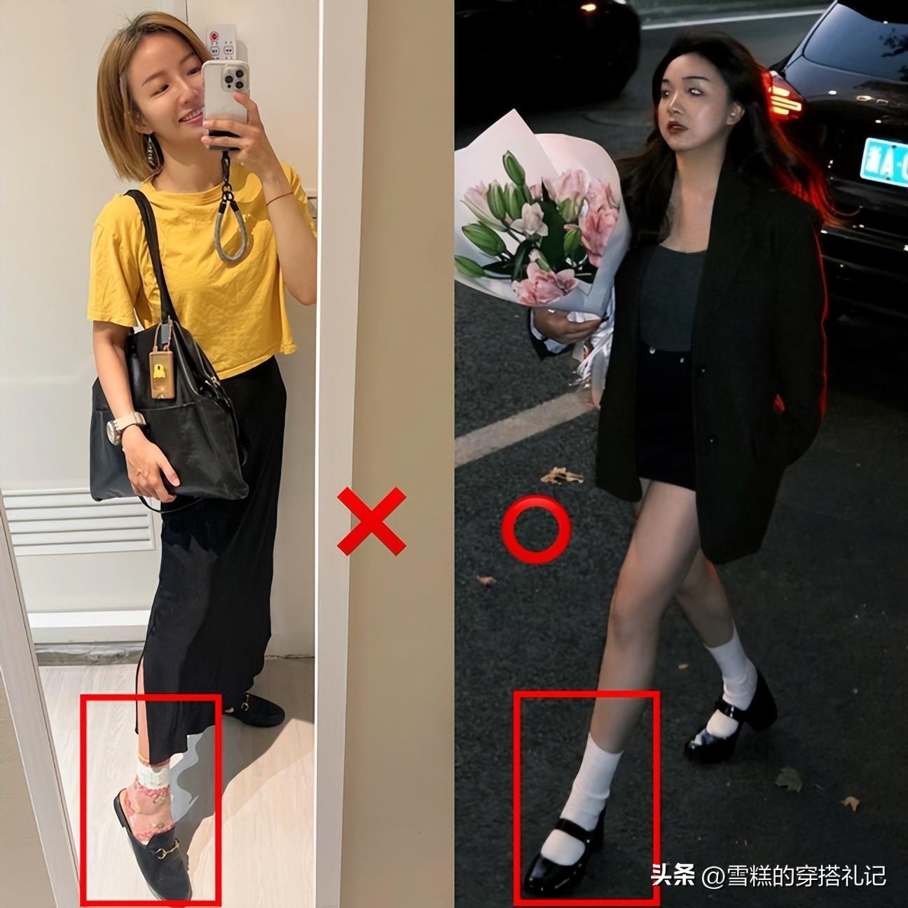 今年的平底鞋適合跟襪子搭配,並不是隨便一雙襪子,就能穿出好身材與好看,選錯了依舊會踩雷。要注重襪子的長度,選擇太長了也不行,比如在膝蓋位置或者是超過膝蓋位置的長襪,它非常考驗腿的直度和寬度,沒有一雙美腿的女人都不要碰,最佳的長度是中筒18cm左右,基本上不會踩雷。