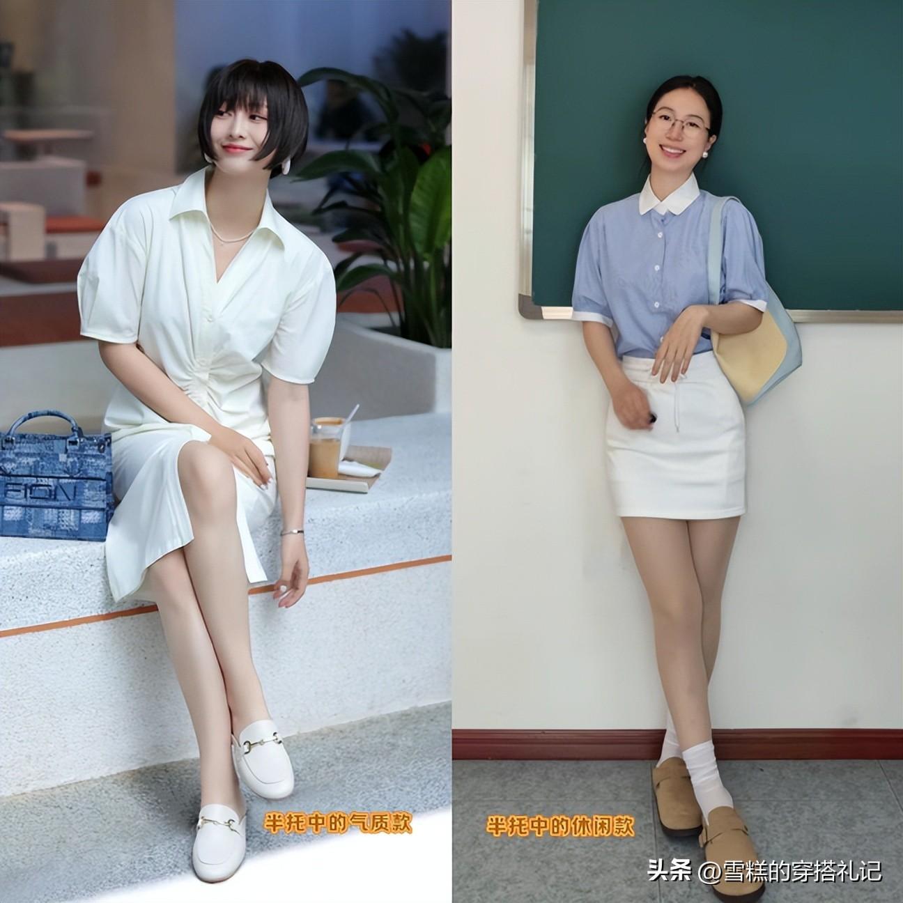 配裙子想要穿出慵懶又不失氣質的單品,半拖鞋是必備的,它一腳蹬的方式讓很多女人愛不釋手,在半拖鞋款式中,推薦勃肯鞋後穆勒鞋。勃肯鞋屬於舒適休閒款,鞋子看起來不精緻,但是會有種鬆弛愜意的氣質,要顯知性高級,那就穿穆勒鞋,它採用皮質與尖圓頭,讓鞋子有延長性,顯氣質的同時還能有大長腿。