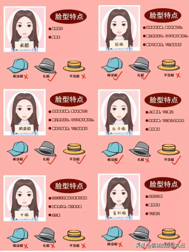 有些人會疑惑,自己按照上面的推薦戴帽子。卻呈現出不好看的效果,可能跟自己的臉型有關,不同的臉型,也決定了你戴什麼樣的帽子好看。