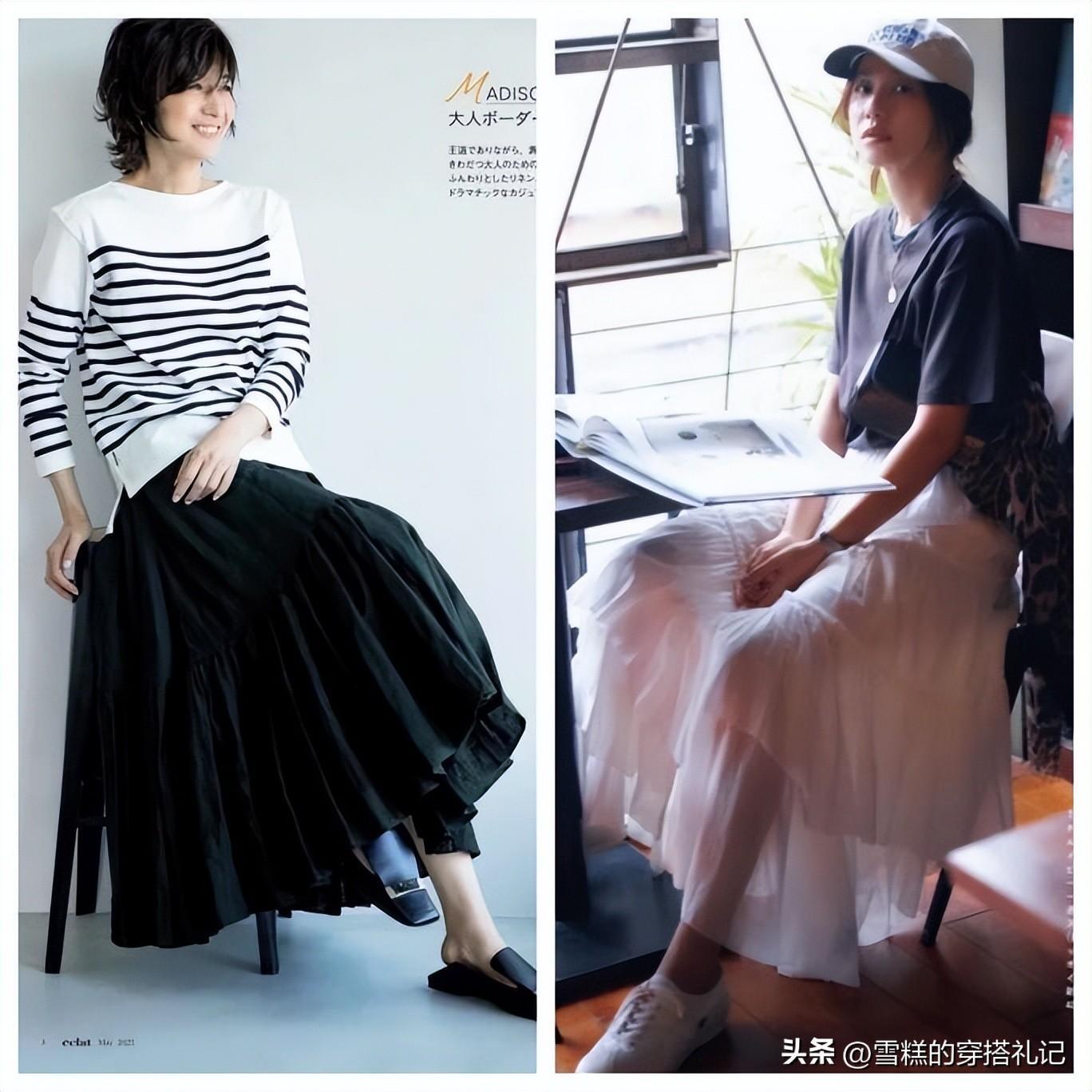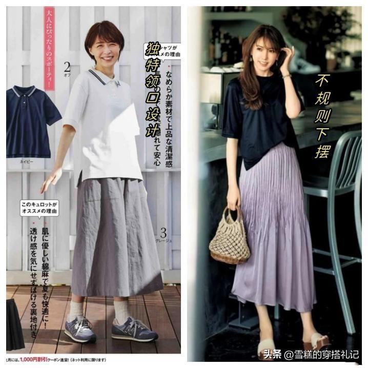 奔四奔五的女人,建議學學日本雜誌的打扮:T恤+百褶裙,特減齡