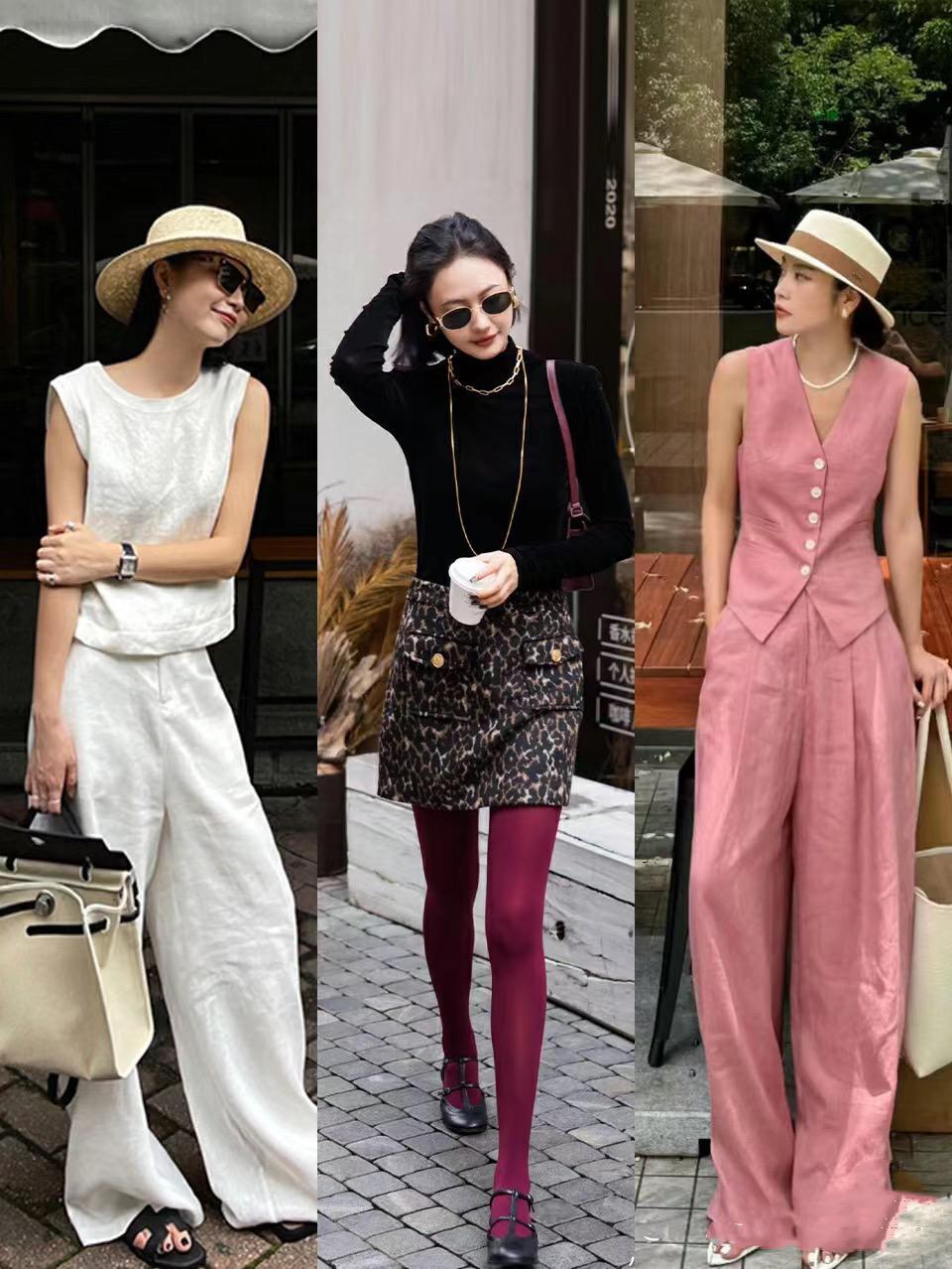 鬆弛度假風穿搭,一定少不了配飾的點綴。雖然鬆弛,卻也時髦顯貴。穿着馬甲+闊腿褲的套裝,點綴珍珠項鍊、草編帽,氛圍感拉滿。