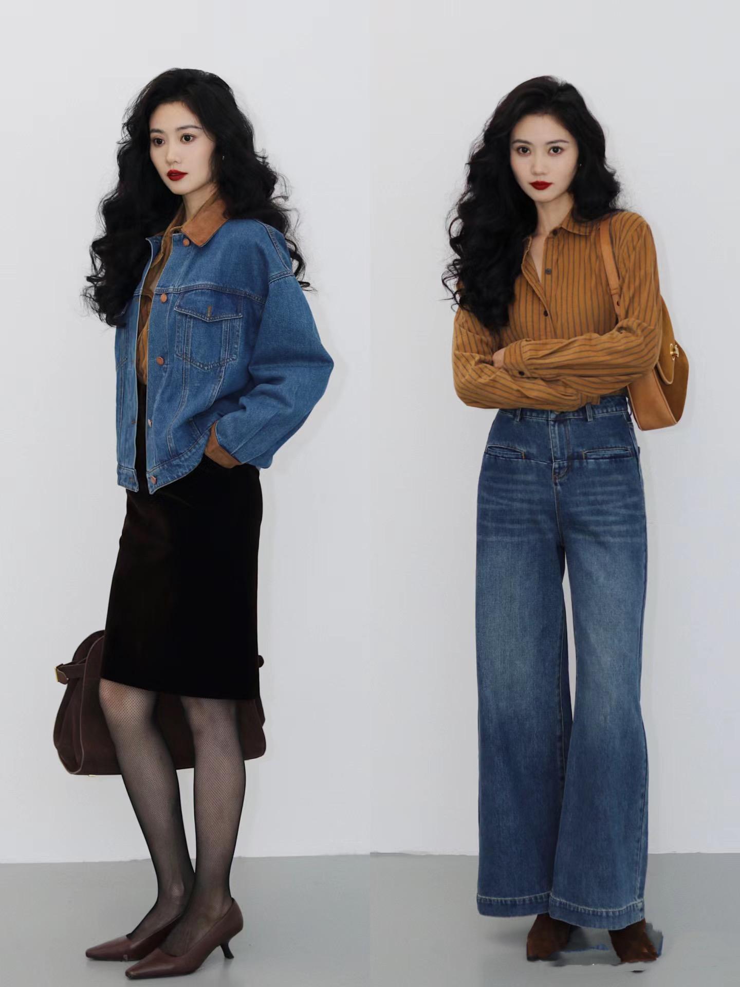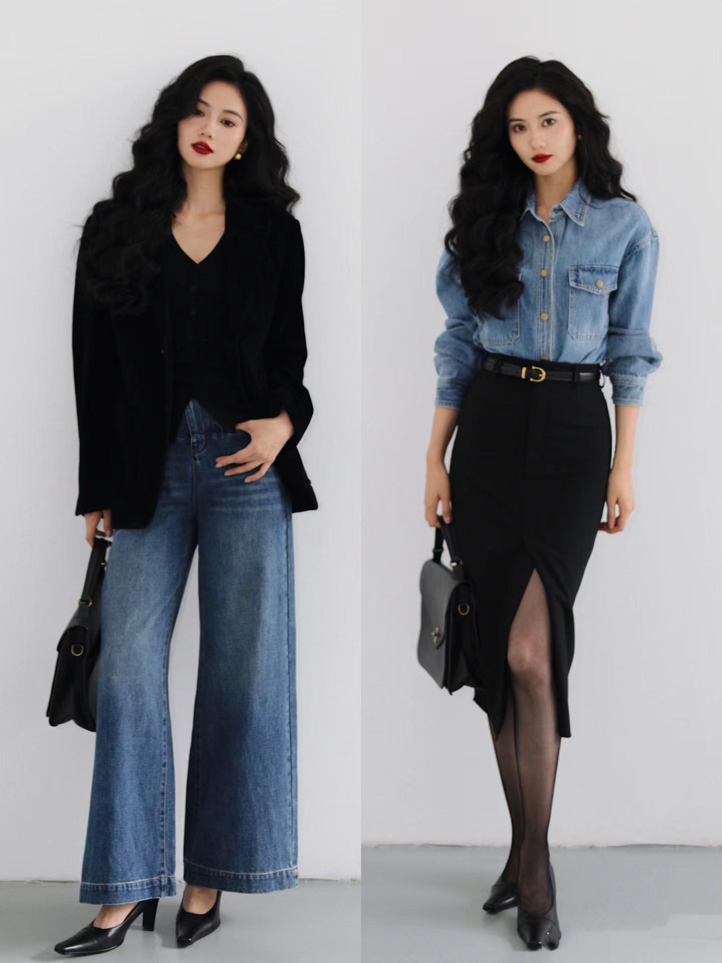 高智感穿搭,不會過分的強調女性元素,而是以中性風單品爲主。比如牛仔襯衫、西服外套、直筒牛仔褲等等。