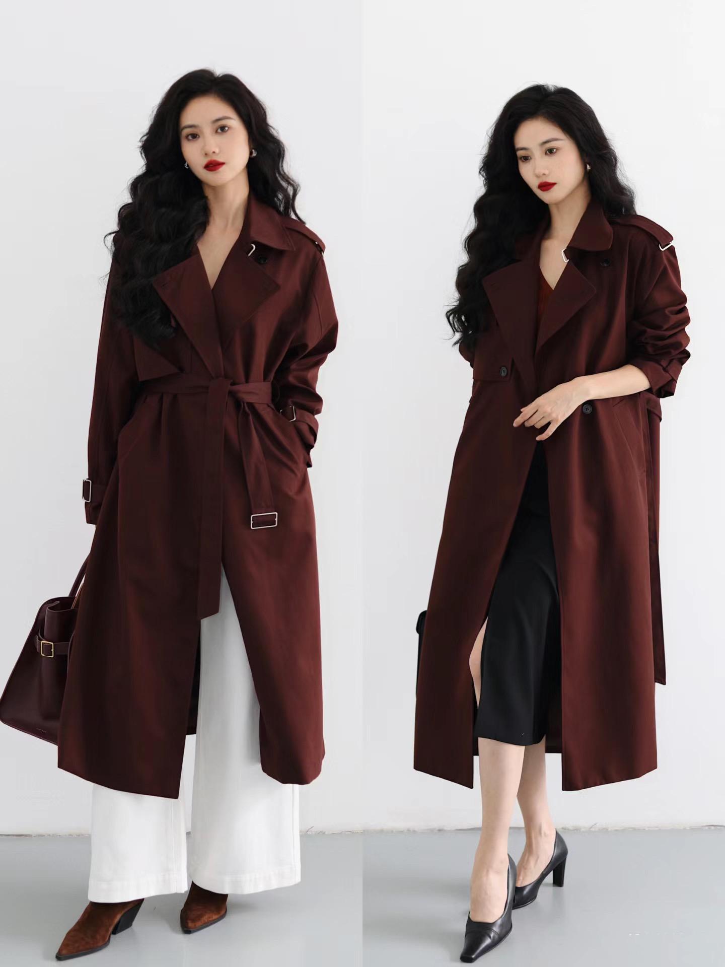 美颯又拉風的早秋穿搭,也可以給工作日增添風采。飽和度超高的棕色風衣外套,配一條保色闊腿褲,時髦拉風還提氣質。