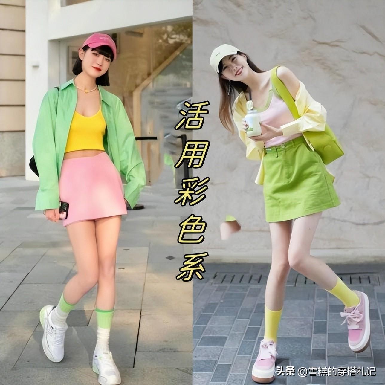 在挑選不同的單品進行配色的過程中,我們不妨多多考慮彩色系的單品。只要控制好顏色的數量以及飽和度,就可以合理的降低造型的衝擊力。例如選擇檸檬黃的吊帶搭配薄荷綠的襯衫,再結合水粉色的短裙,三種柔和的彩色互相組合在一起,可以輕鬆爲我們的穿搭注入俏皮與活潑的氣息。