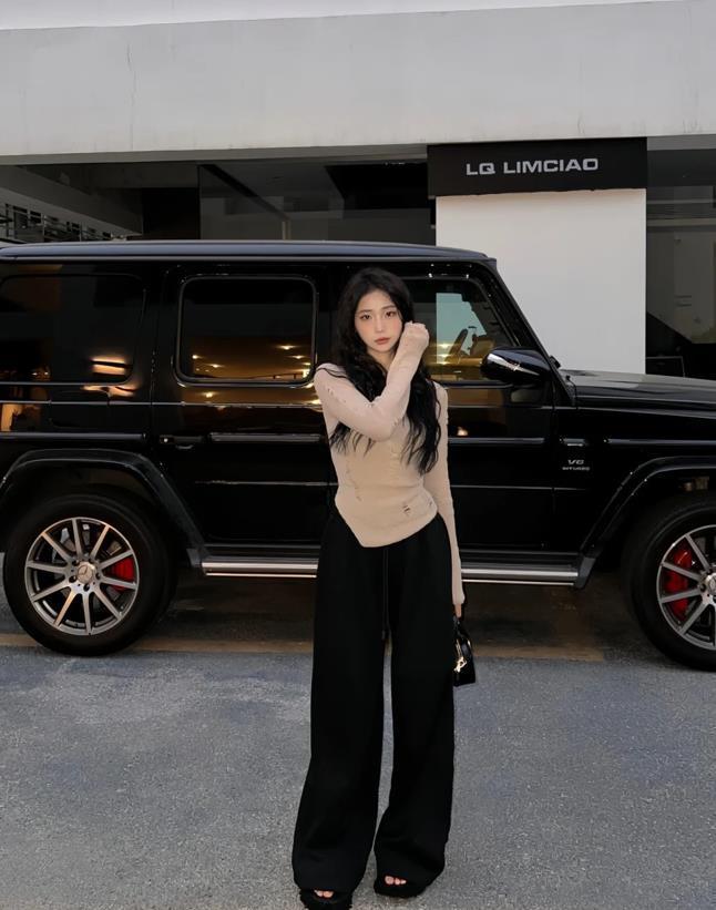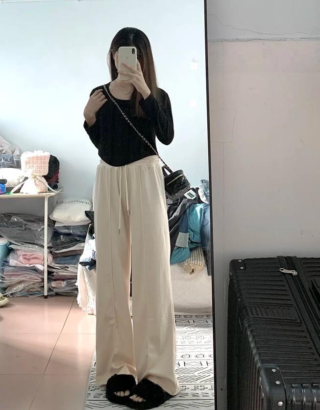 今年真的非常流行鬆弛感的穿搭,這麼一條黑色闊腿褲,看似有些拖地的長度,實際上穿起來卻非常顯腿長,搭配起一件修身上衣,上緊下松的組合,也太修飾身材了,小個子女生就應該學起來。