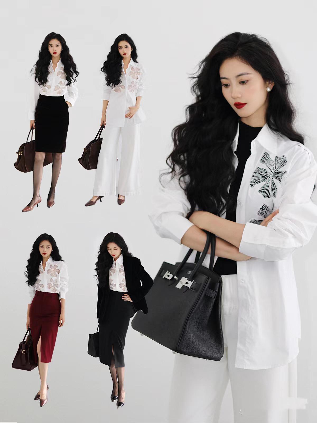 挺闊白襯衫,可以配半身裙,直筒褲。可以性感也可以酷颯。挺闊白襯衫,可以作爲內搭、可以作爲薄外套,也可以單穿,風格上更多變。