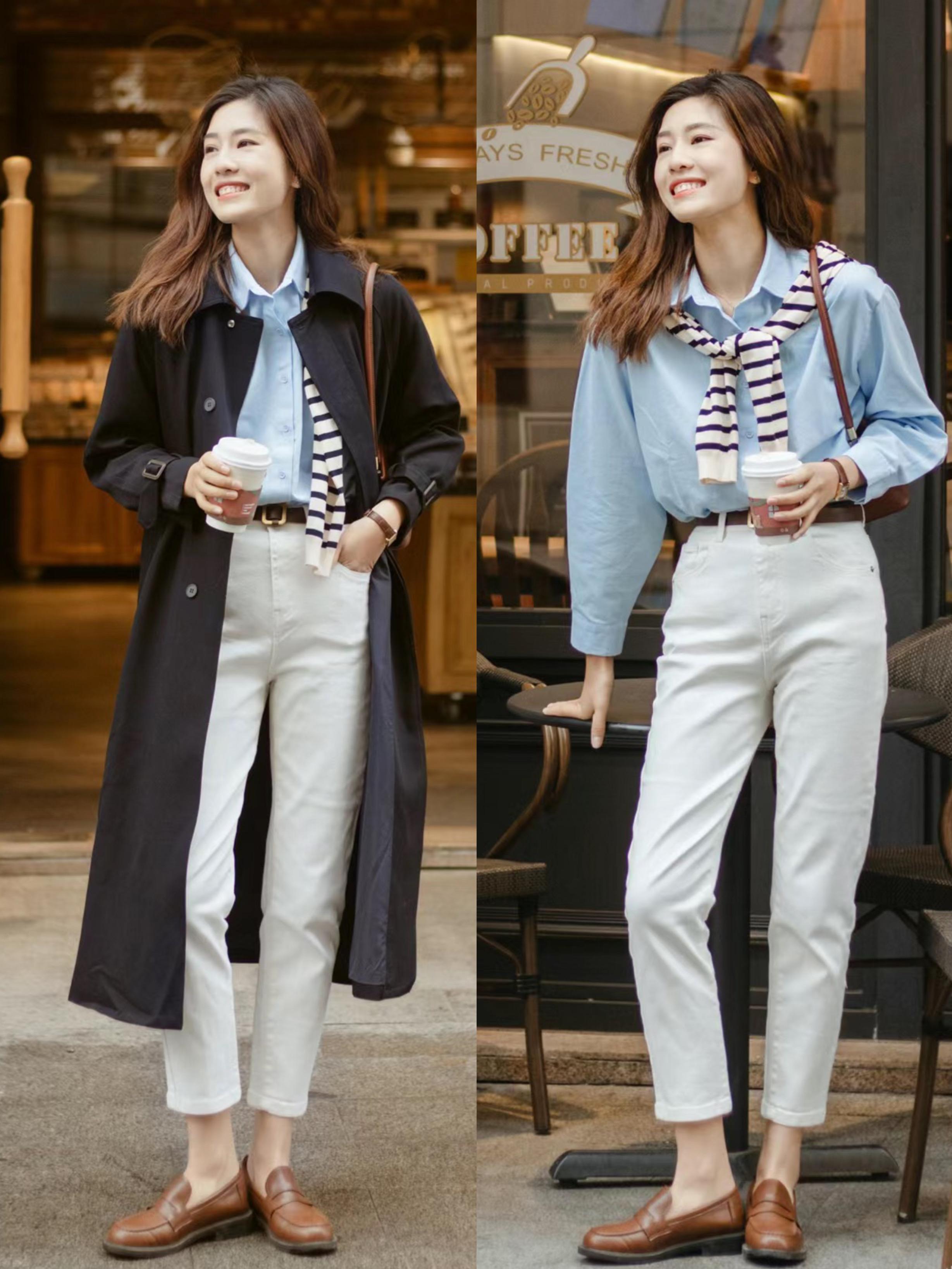 秋天裏白褲子+樂福鞋的組合那麼受歡迎,還是因爲日常穿着率更高。上班族、學生黨、寶媽,都可以嘗試這種組合。
