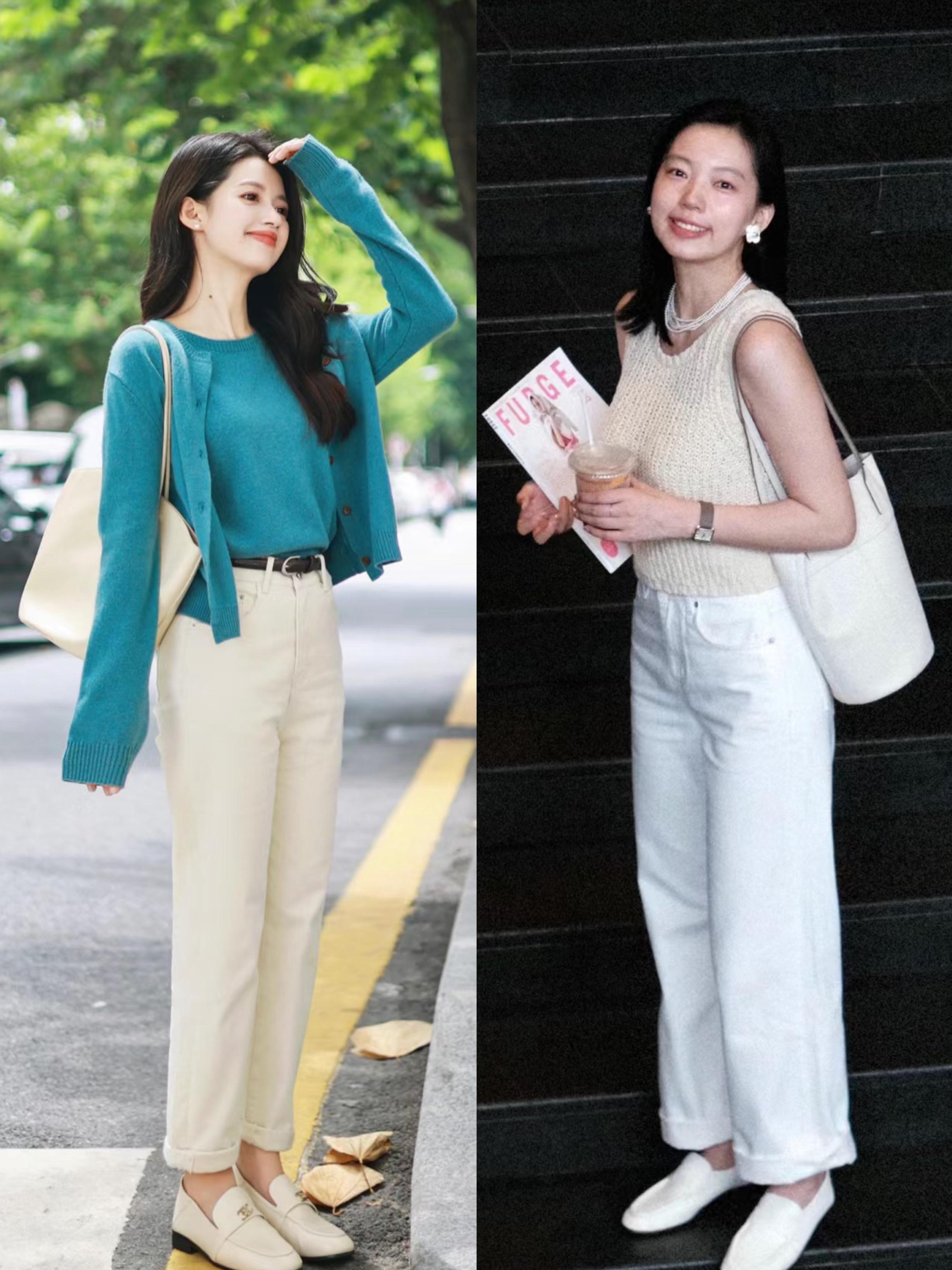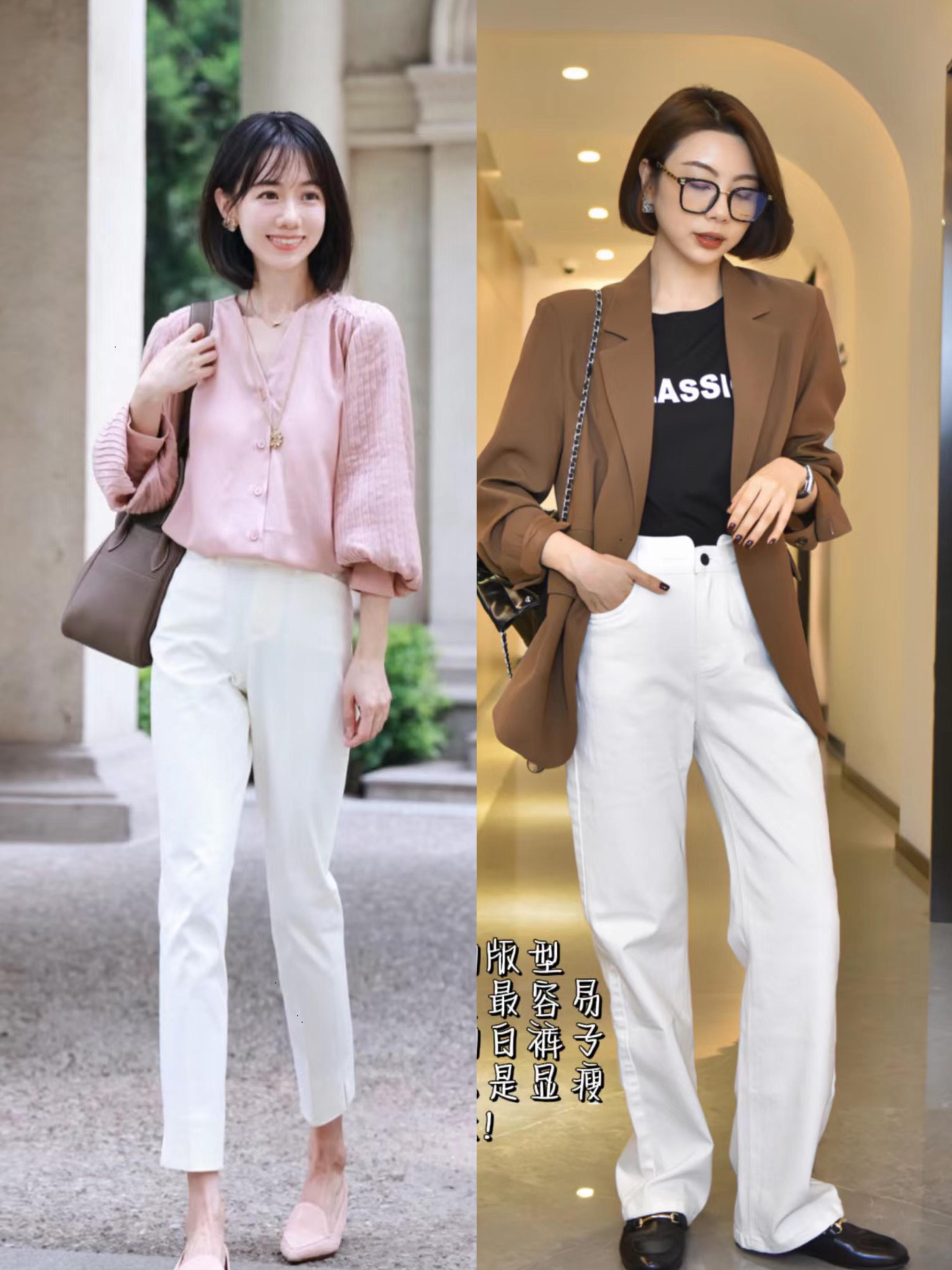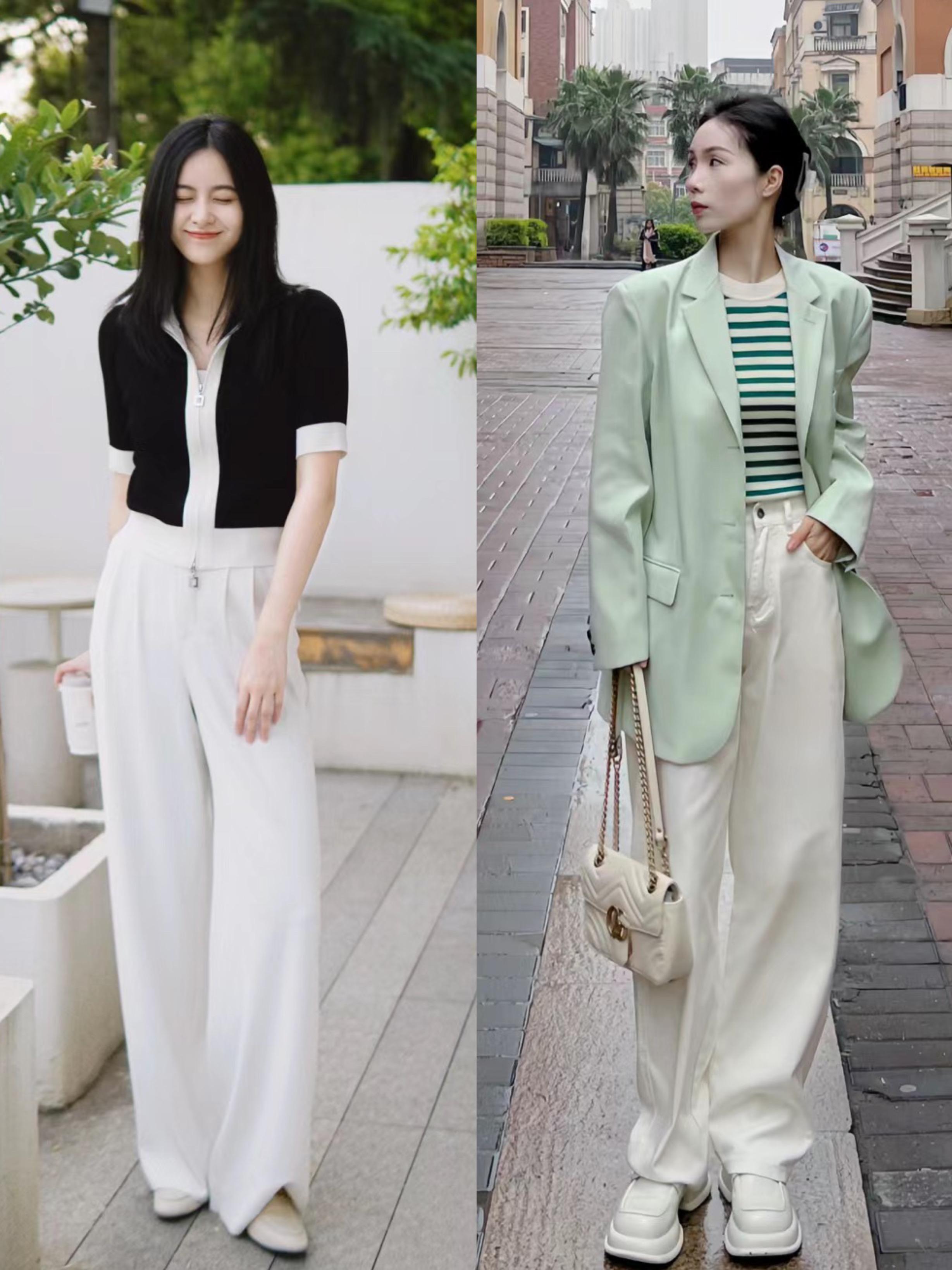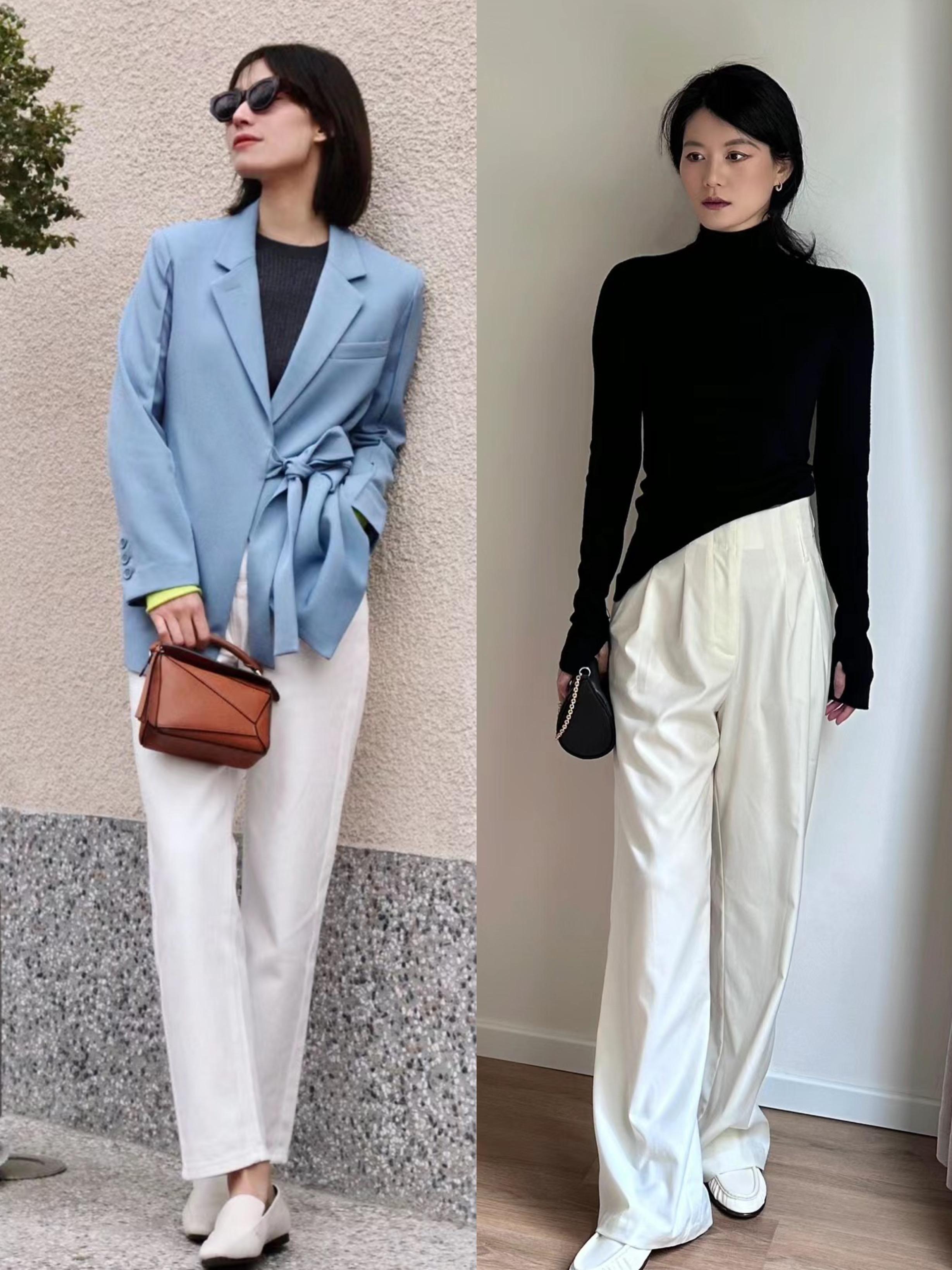 所謂兼容性更強,其實就是更百搭一些。白色系乾淨又明亮,作爲褲子遠離了面部肌膚,也不用擔心顯黑。
