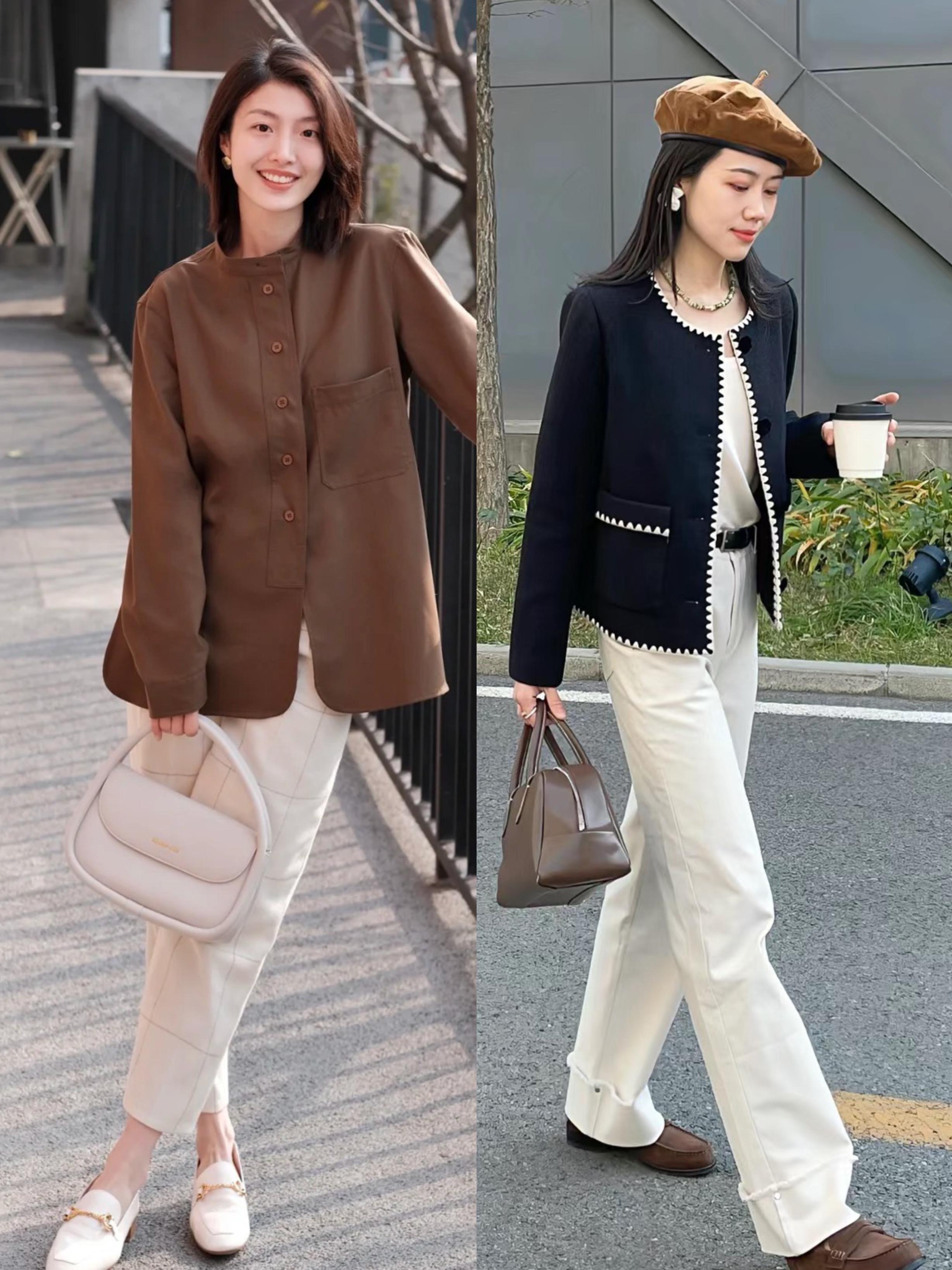 秋天裏的白褲子,也是基礎百搭單品。配襯衫、T恤、打底衫,都不會出錯。乾淨清爽的白色褲子,讓我們的秋日穿搭更時髦洋氣。