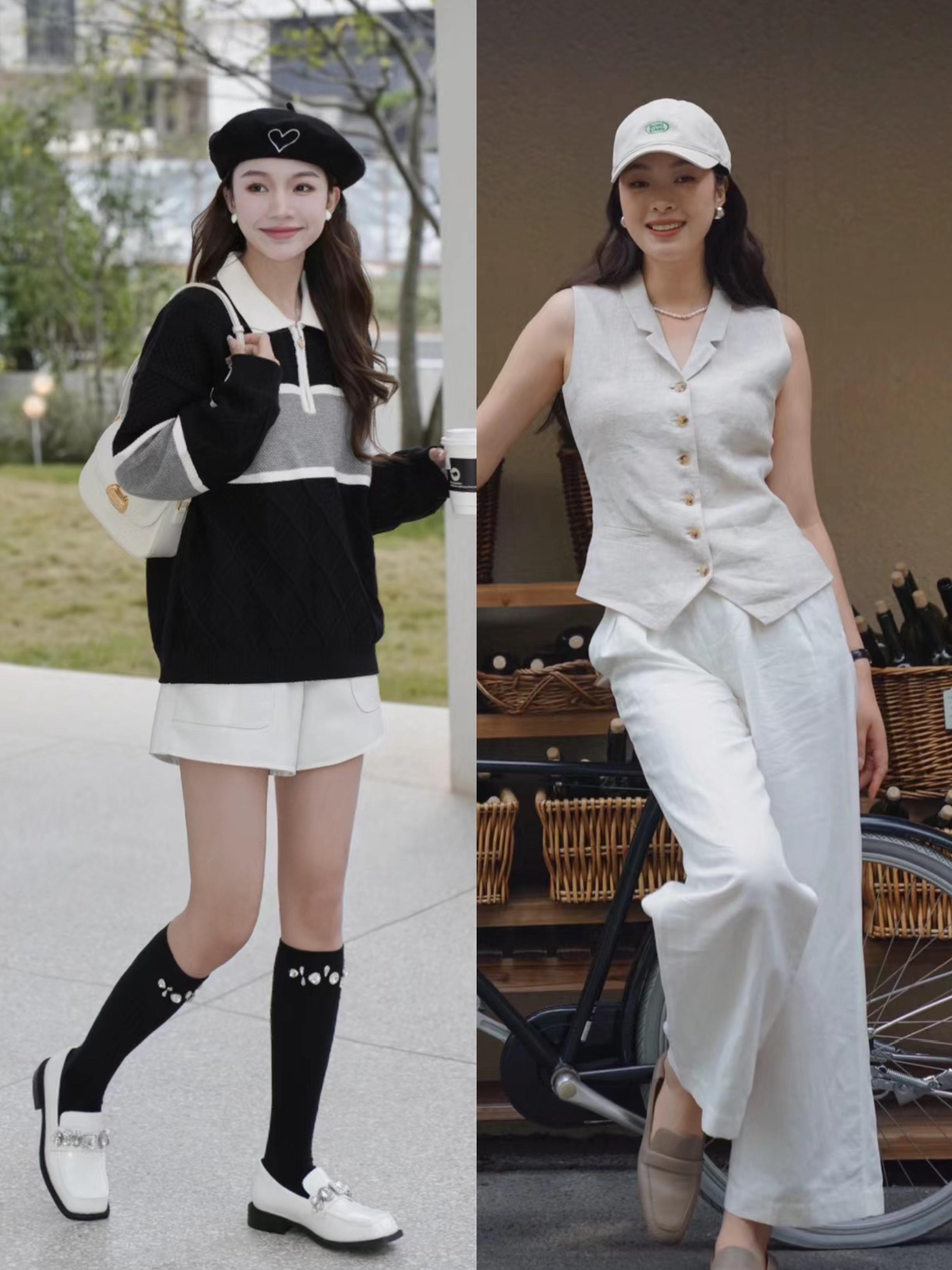 秋天裏的樂福鞋,不僅可以搭配白色褲子。還可以搭配馬甲+闊腿褲套裝、以及學院風針織衫+白色短褲的組合。