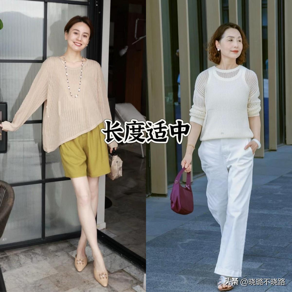 而且,鏤空罩衫的面料十分柔軟,若隱若現透出肌膚線條,疊穿一件修身背心或吊帶在裏面,既能夠勾勒出上半身曲線,又能隱藏贅肉感;清爽乾淨的配色,還能達到顯年輕的功效。