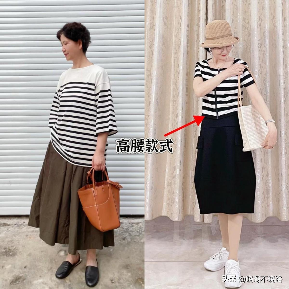 方案②條紋衫+高腰半身裙