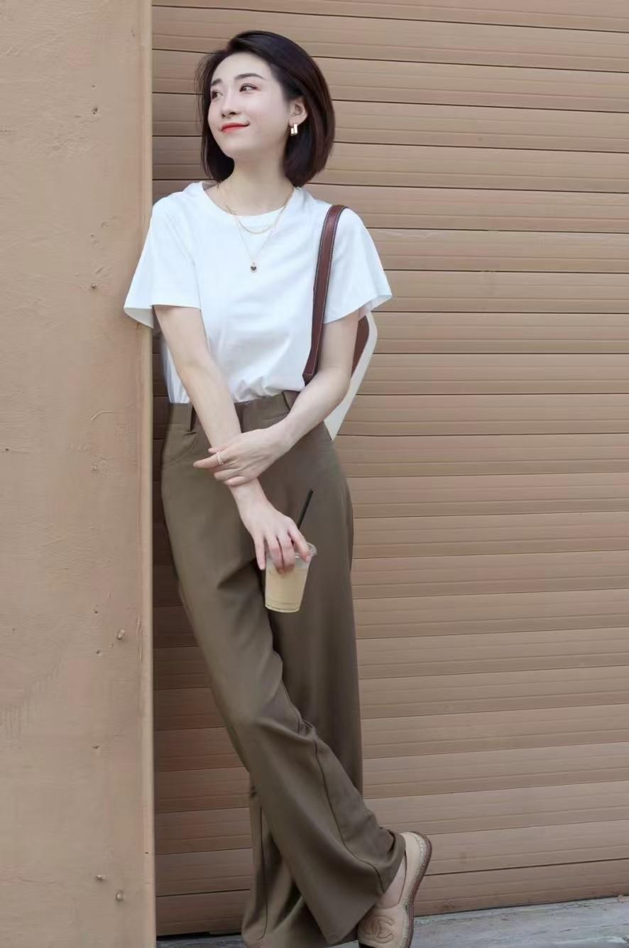 相比之下,還是圓領T恤和V領T恤對我們更爲友好,既對身材沒什麼限制,還不存在顯脖子短風險。
