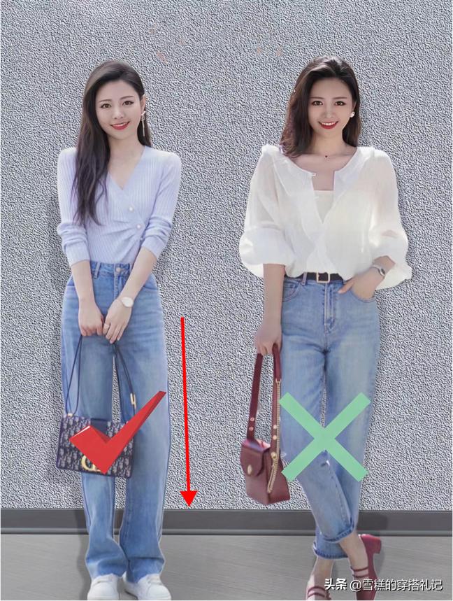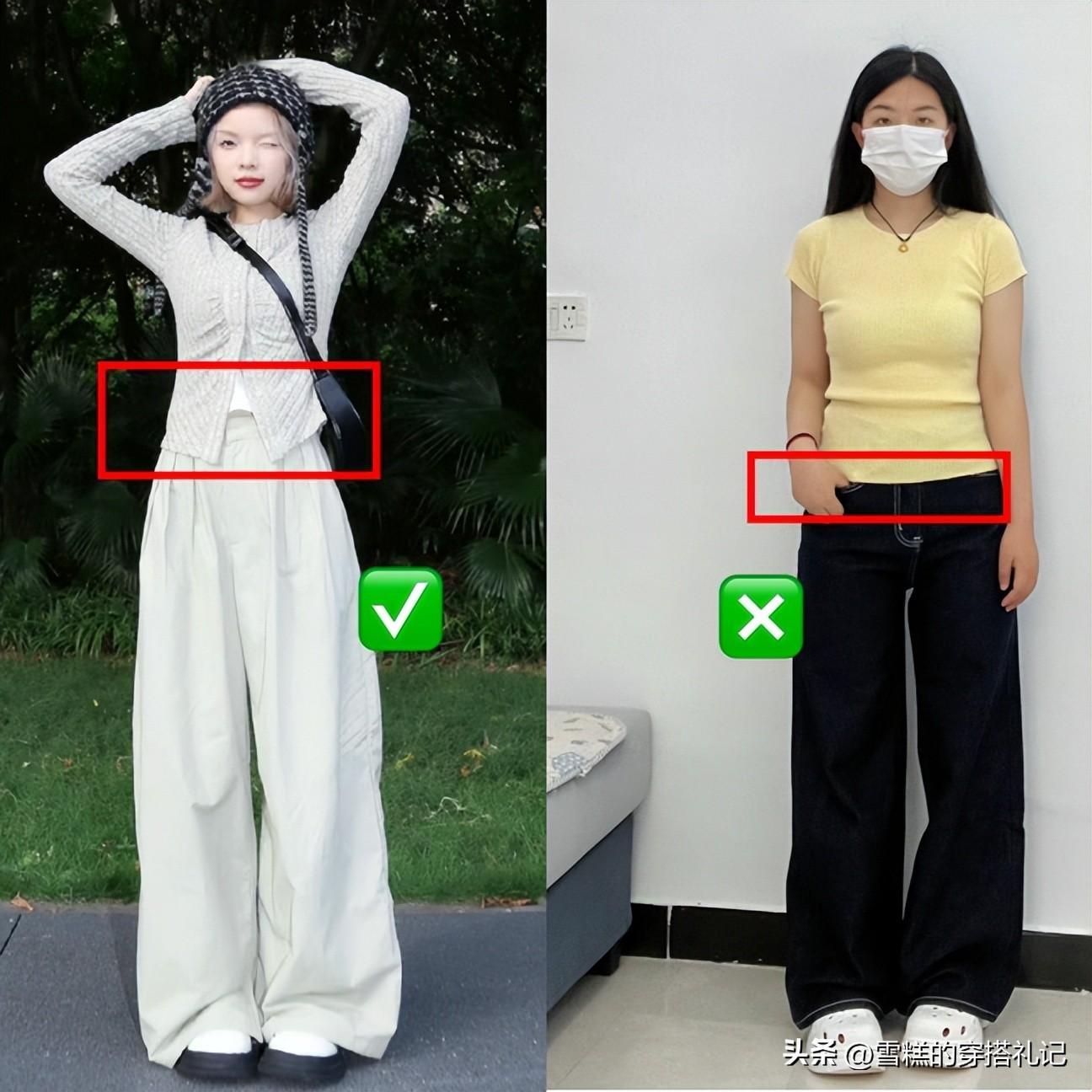 02.上衣緊身儘量選短款,提升腰線對顯高有幫助