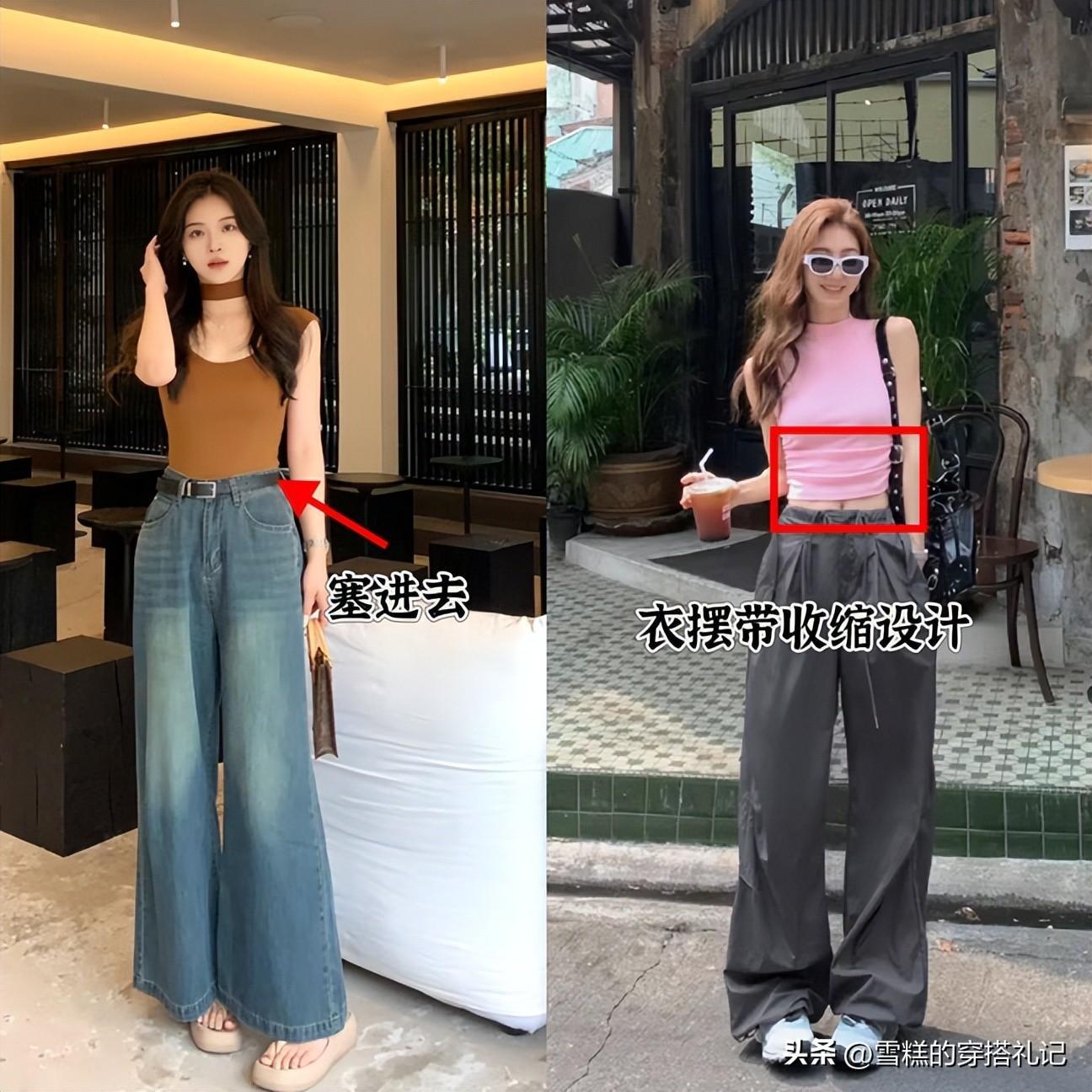 緊身的上衣配合下身寬鬆的衣服穿要更出彩,建議選擇短款的上衣,這樣子他有着提高腰線的作用,讓下半身的發揮空間更大;若是長款的緊身上衣容易拉低腰線,並且腰線的厚度會加大,顯瘦度減少,也不能達到視覺顯高的作用,整個穿搭顯得沒氣質。